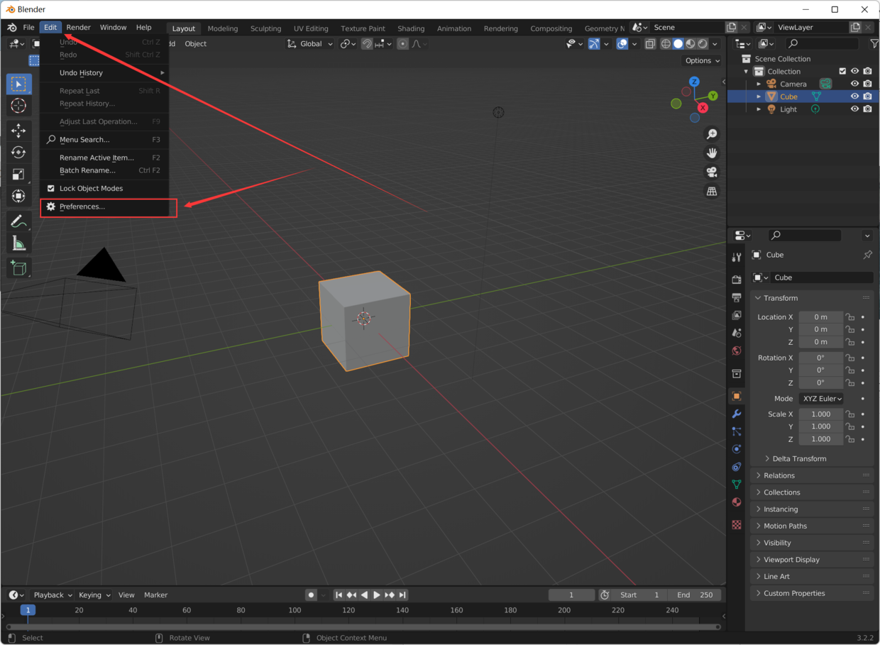 首先用鼠标选择Edit(编辑)选项选择最后一个偏好设置,进入偏好设置界面