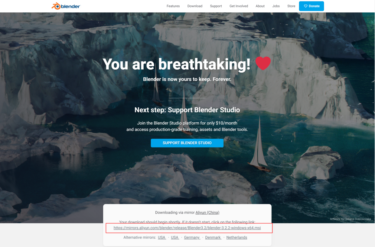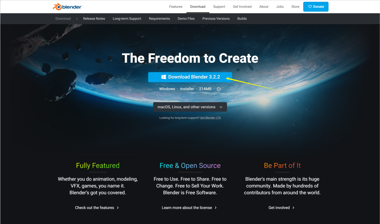 blender是一个免费并且开源的三维渲染器,blender官网链接,下面这是blender官方界面的下载按钮