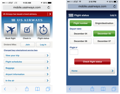 判断是不是应该遵循风格指南的一个简单方法是看视觉品牌有没有和交互设计模式相冲突。拿美国航空公司的应用程序来举例,大部分风格指南会规定公司的logo应该出现在次级屏幕的左上角或右上角。然而美国航空公司的logo包含一个国旗,它缩小了放在角落特别像一个汉堡图标。这是一个显而易见的可用性问题。美国航空公司的ios应用尝试着解决了这个问题,他们把logo从次级屏幕中去掉了。虽然这有悖于大多数风格指南,却符合他们的需要。
