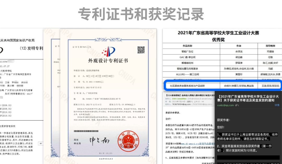 我们在做完毕设后,就与导师们一起在2021年7月27日已申请发明专利,2021年12月14日已申请外观专利,专利于归属学校,受知识产权保护,并且在2021年投递了全国大学生工业设计大赛和中国智造等比赛,并获得了一些奖项。