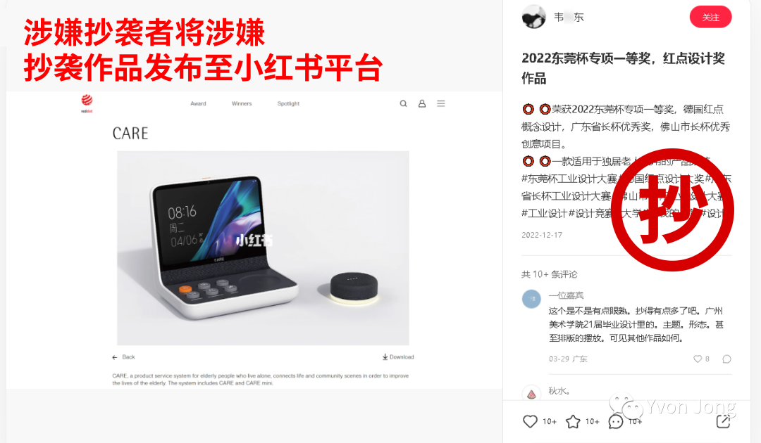 涉嫌抄袭作品-红点奖官网展示:https://www.red-dot.org/project/care-60354