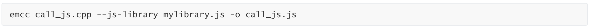 在控制台使用emcc命令生成wasm文件,需要使用`--js-library`链接外部的js文件: