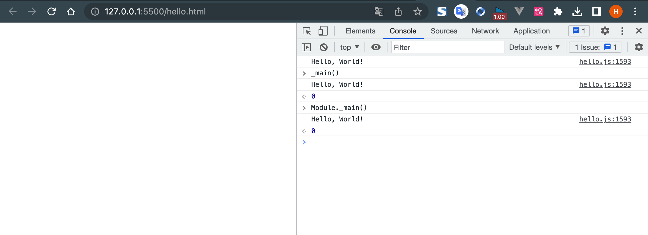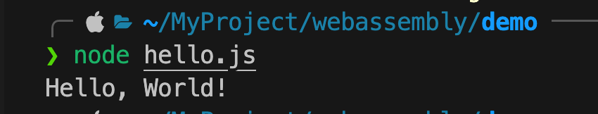 编译完成后在目录中会生成`hello.js`文件和`hello.wasm`文件。