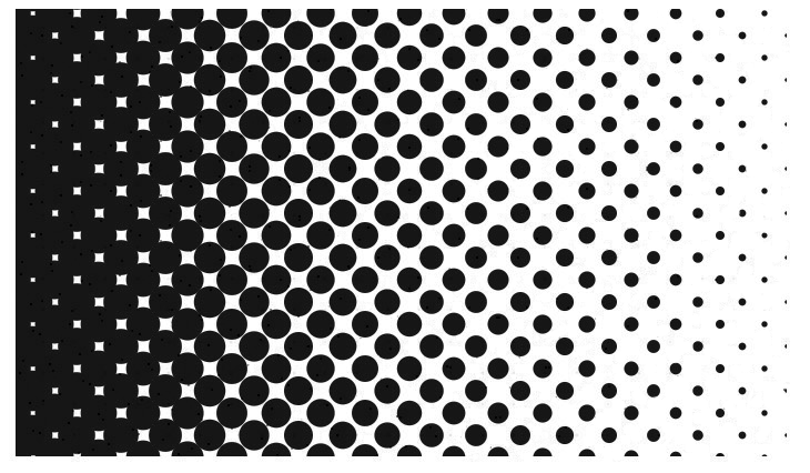 实际上现在的印刷工业水平已经很高,印刷品都印得很精细,这个“靠调节墨点的大小来获得颜色的浓淡变化”的原理就显得很不直观了,比较难理解。