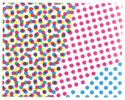 上图是一个CMY 三色套印的网点图案。用这样的办法,就可以实现彩色图案的印刷。