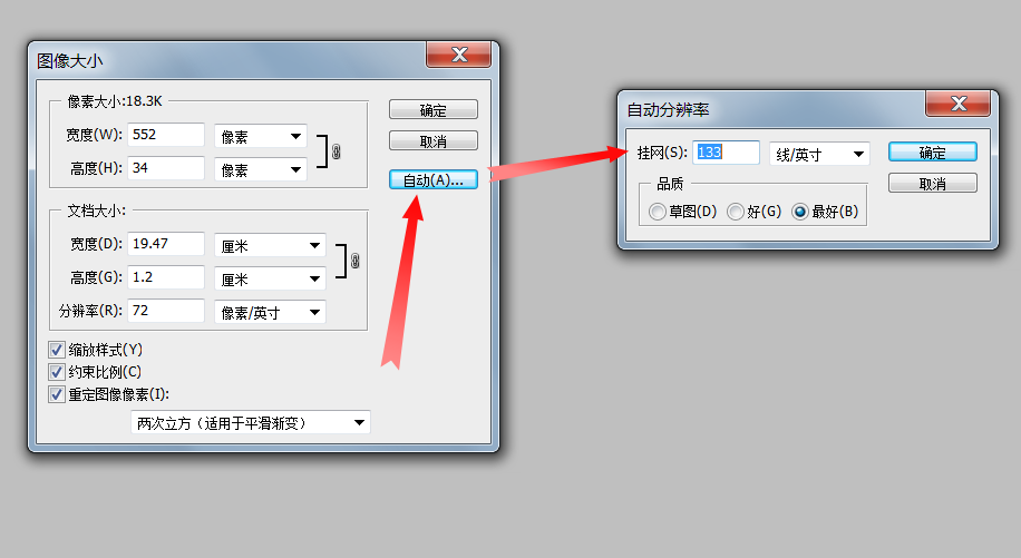 PS里面也有一个根据挂网线数自动匹配分辨率的设置(图像->图像大小->自动->挂网):