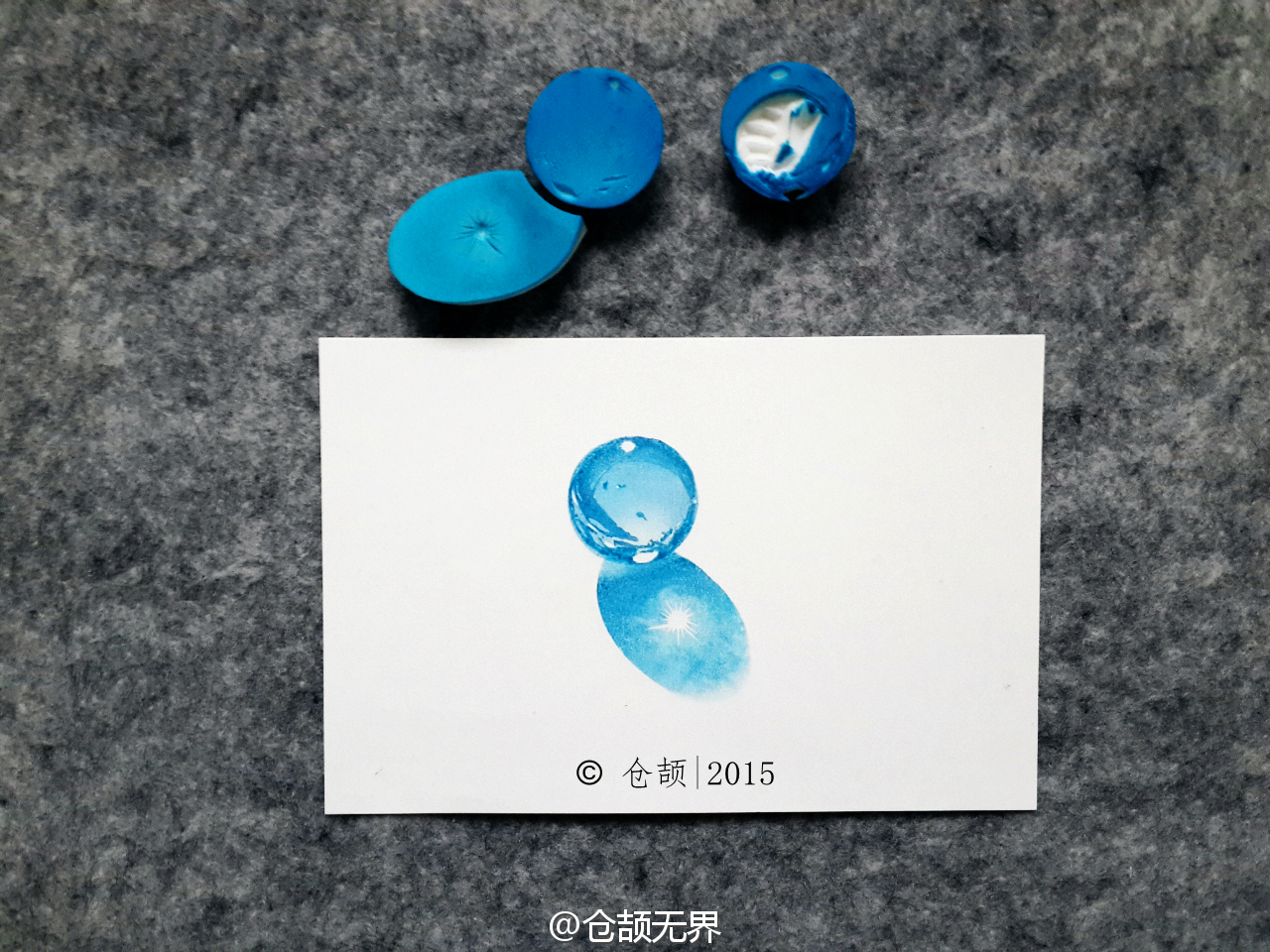 上面的作品,在玻璃珠上采用了两次套印。但在影子部分,就完全是靠调节印出来的墨点的大小来获得颜色的浓淡变化。不过这个玻璃珠刻得非常精细,不容易观察到细节。