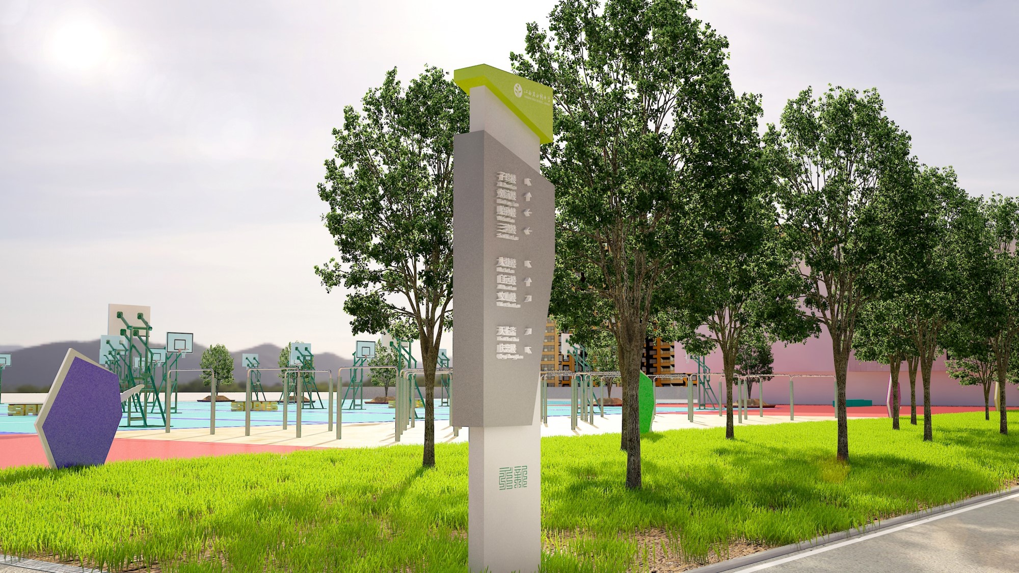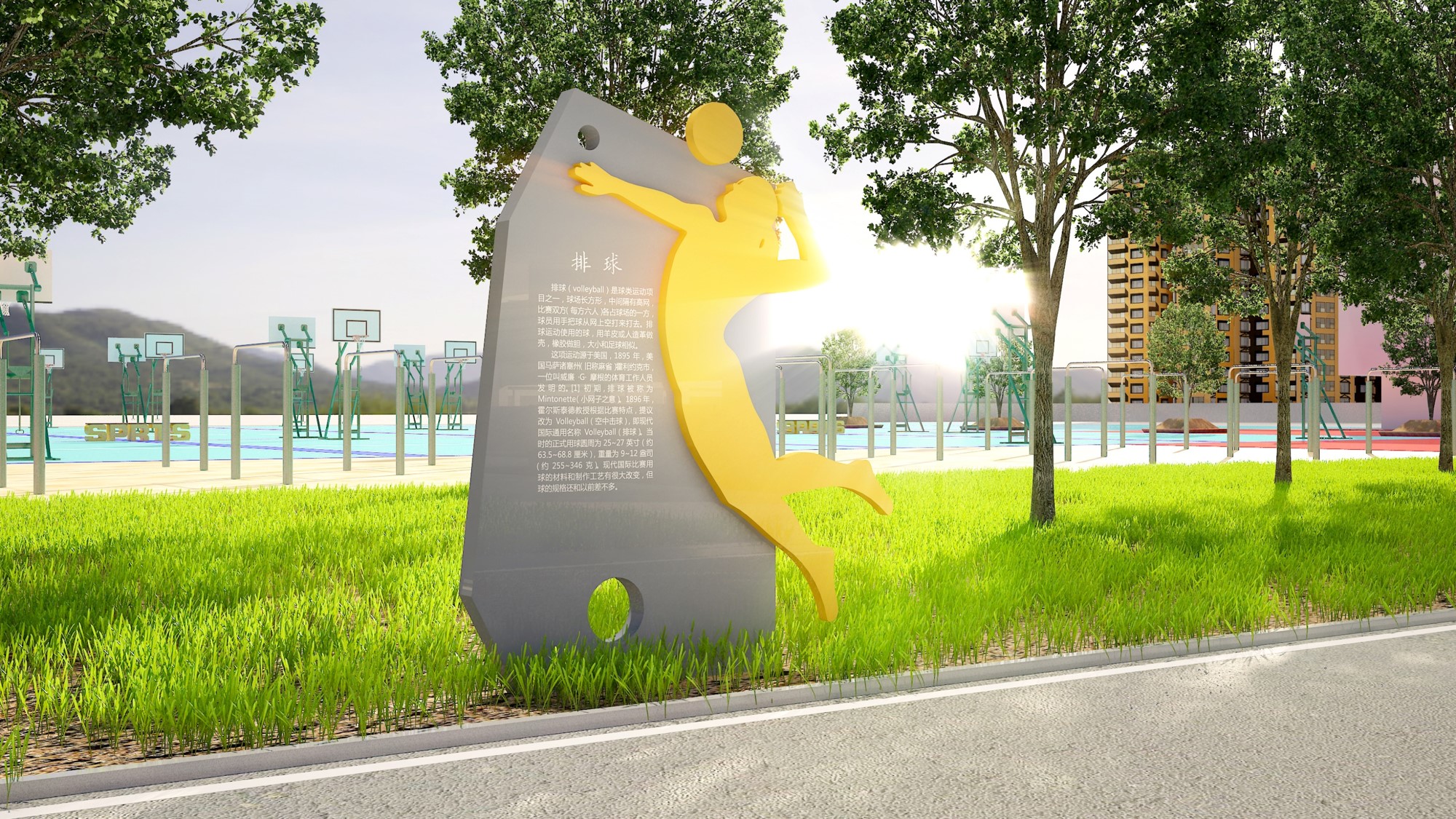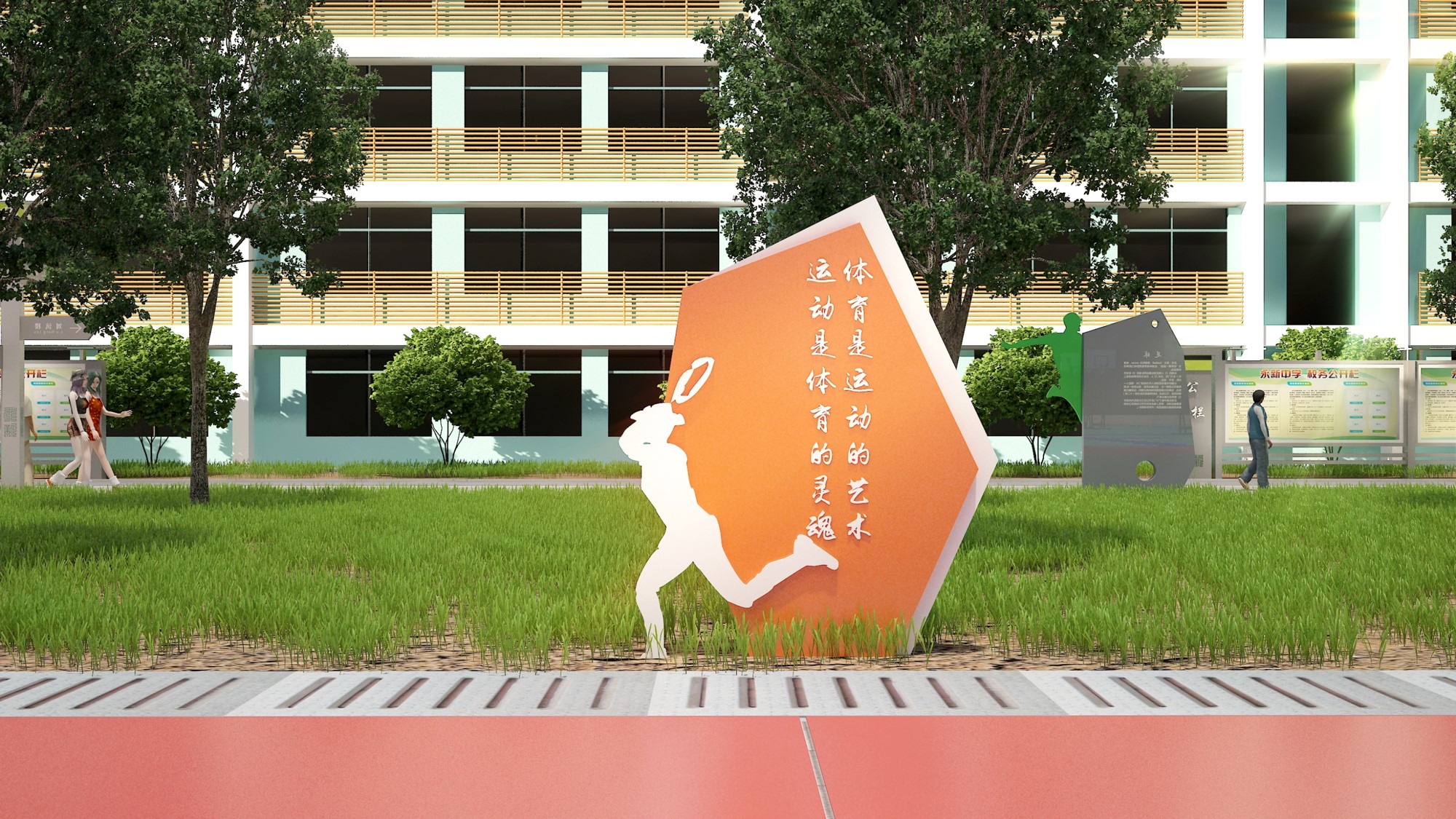 体育场设计内容:①体育小品②文化小品