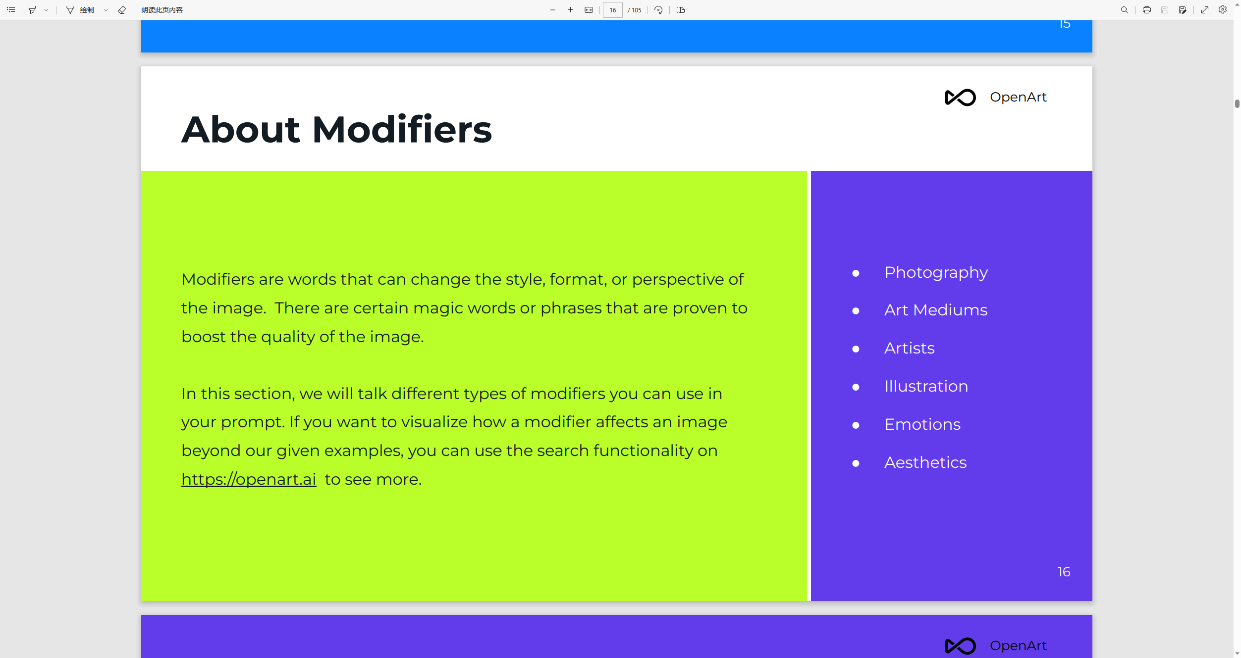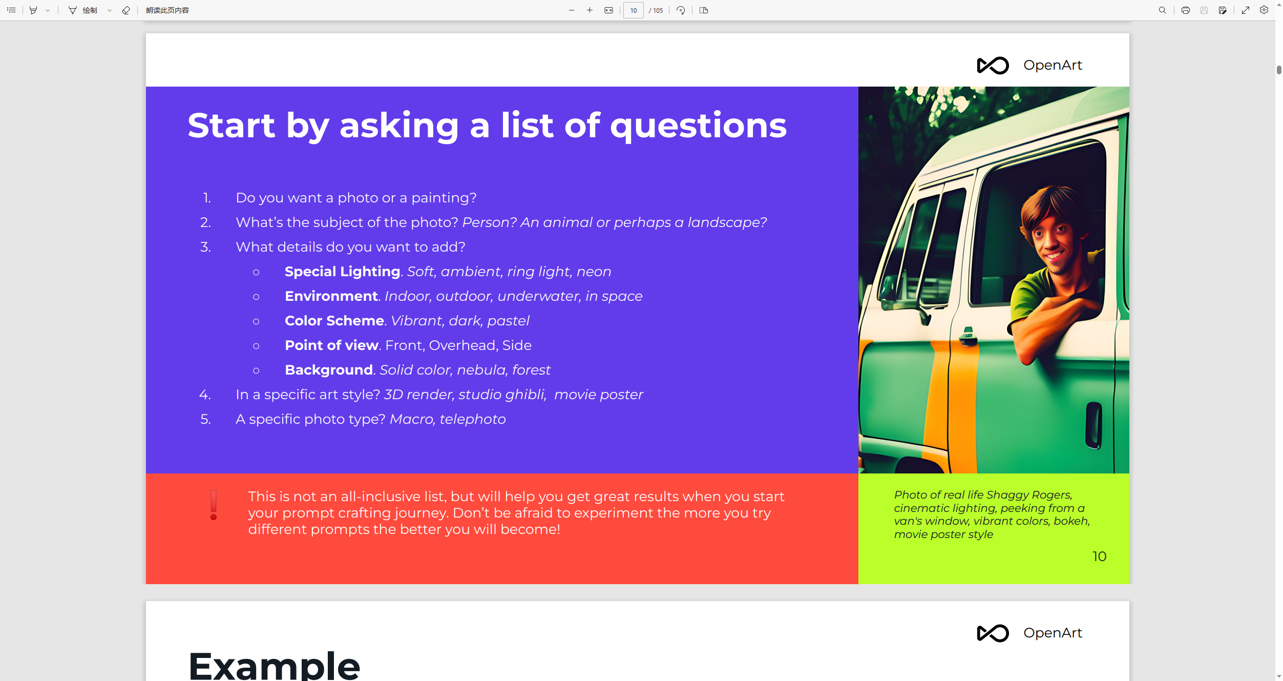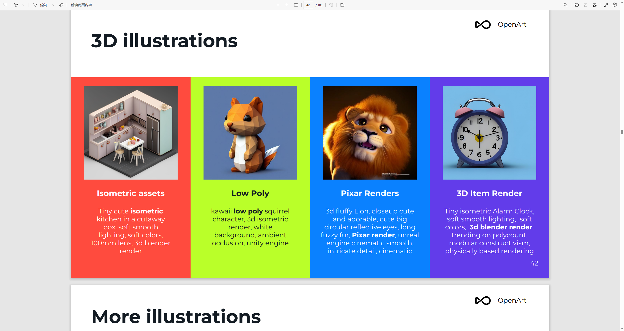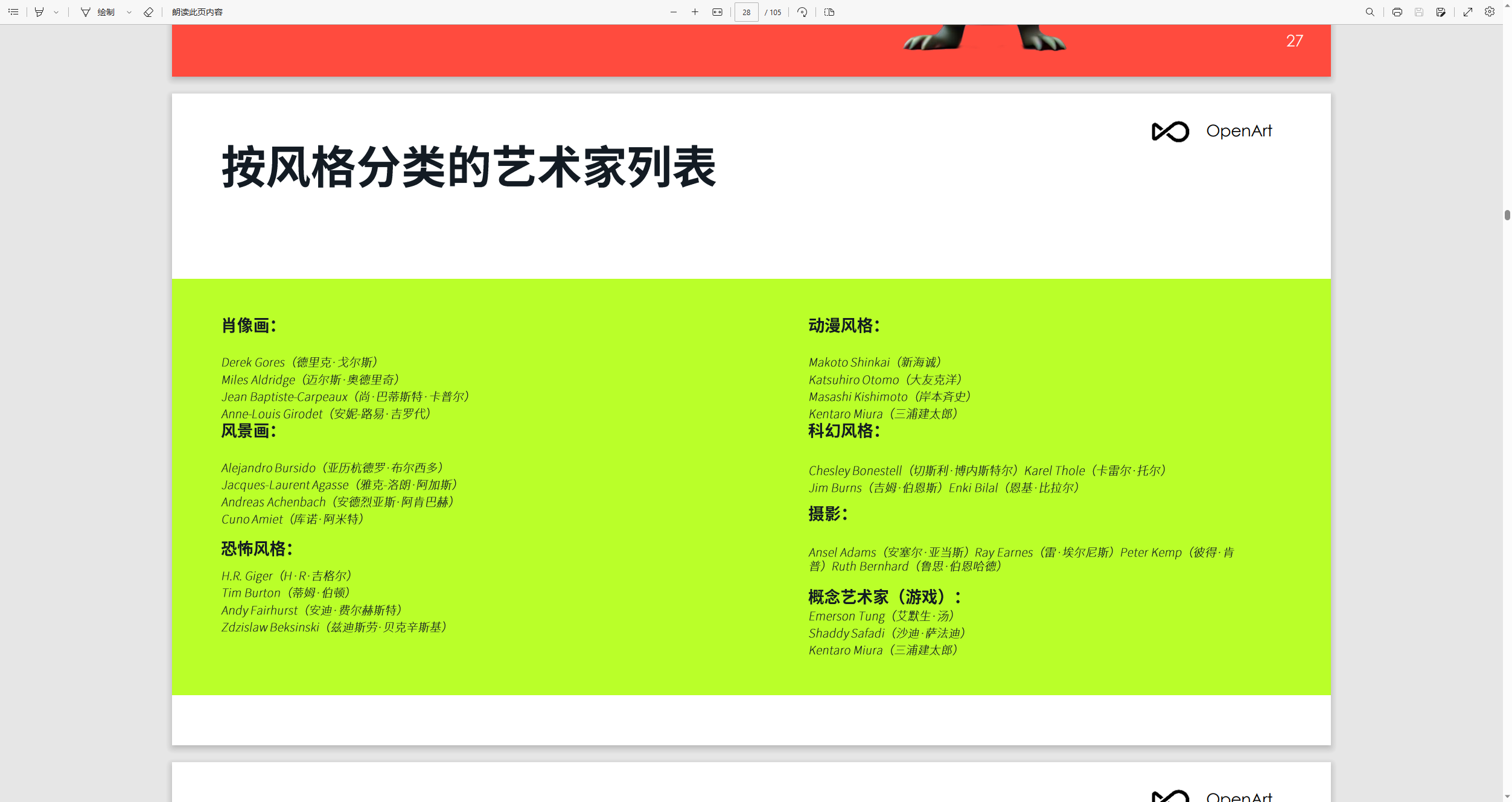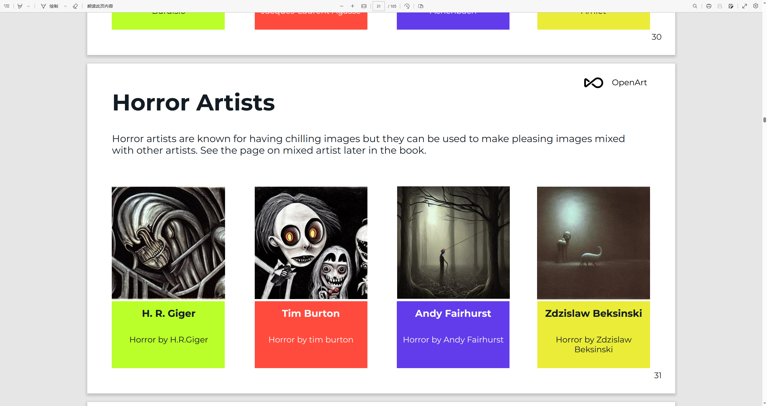 书本的最后,分享了一些OpenArt上的作品包括提示词: