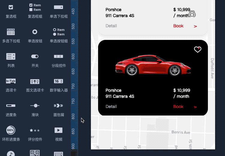 - **自带交互特性:**摹客RP中的预设组件,都自带交互属性,无需添加任何复杂的设置,就能呈现出真实的动态效果。无论是点击切换列表选项、对下拉菜单进行选择、对滑块进行拖动,都能轻松实现。