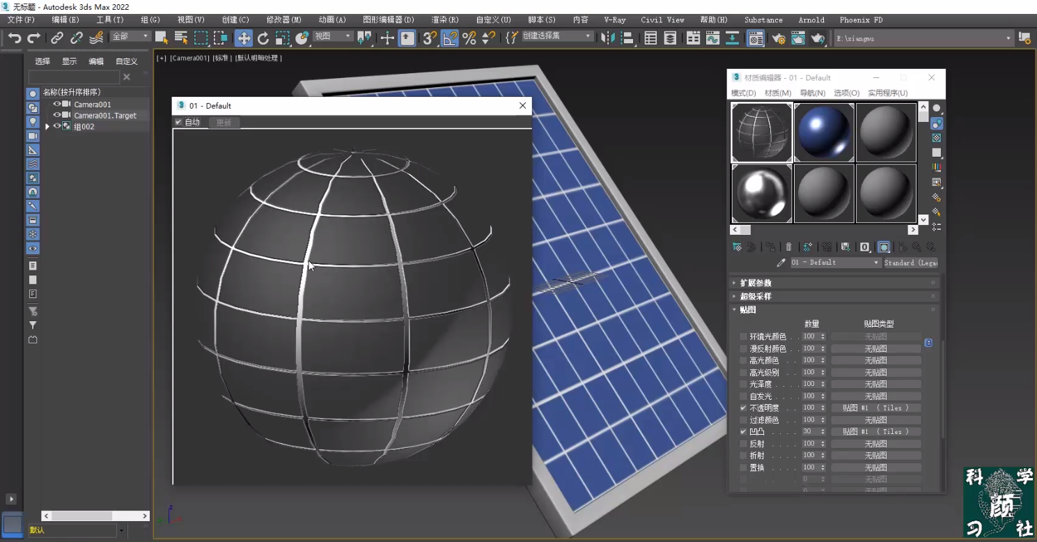 我们再用模型和材质工具给太阳能面板增加好支柱,这样一个太阳能面板就制作好了。