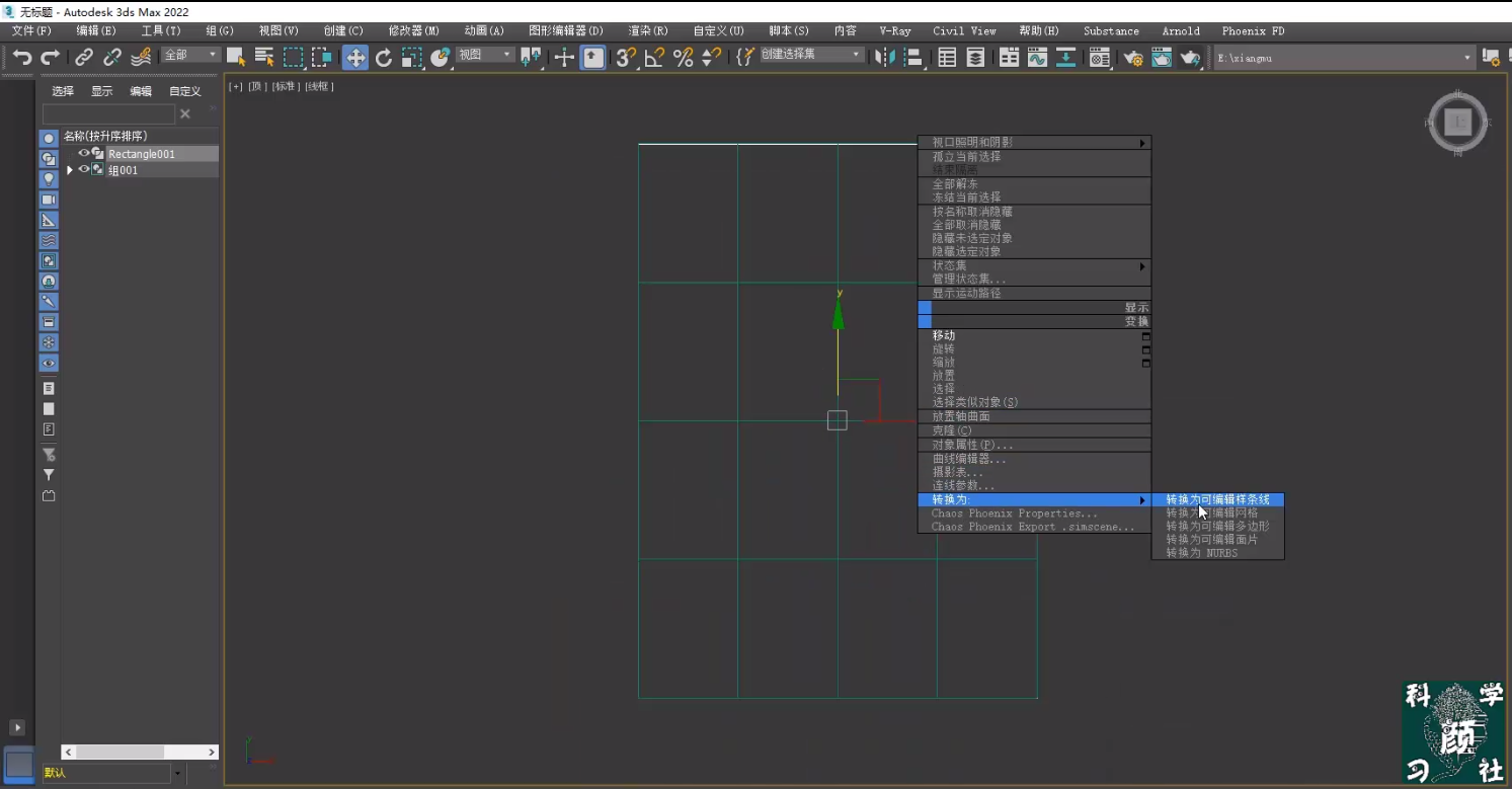 再回到顶视图,隐藏地上的栅格,关闭材质编辑器,创建面板创建图形,选择矩形工具,画出矩形,和面板差不多一样大,右击【转换为】-【转换为可编辑样条线】