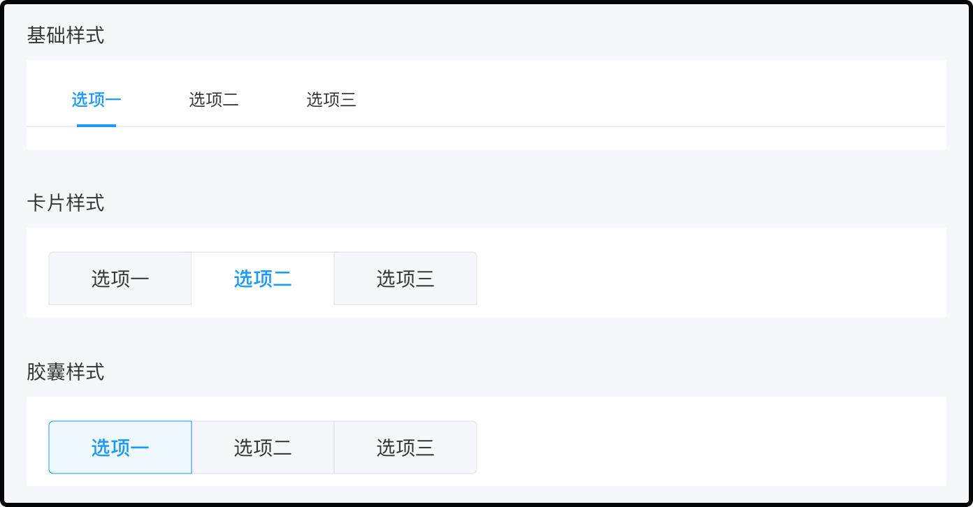 标签切换一般用于没有交集的数据内容,通常和时间,状态的流转有关。