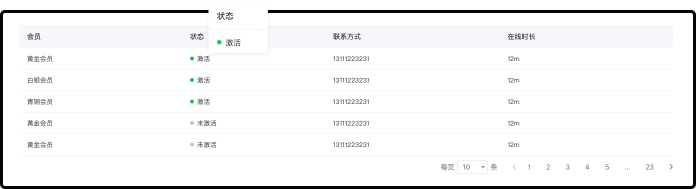 在对表格进行简化的过程中,将诸如状态、电话、性别之类的属性进行符号化,这样可以提升展示效率,极大降低用户阅读所需要花费的时间。