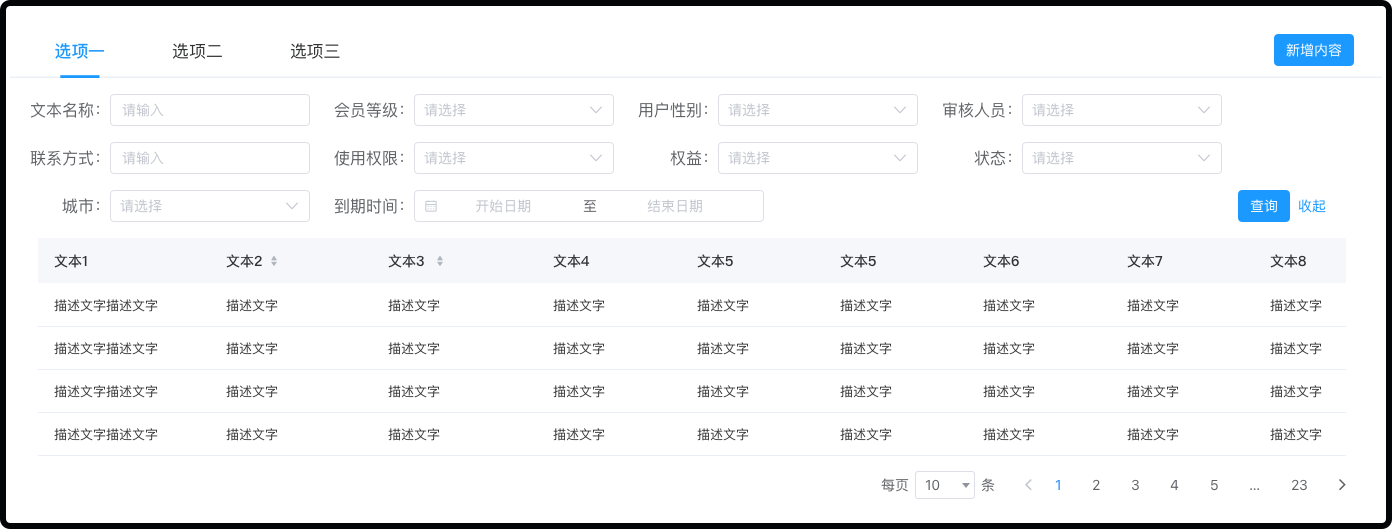 前面我们说过7±2原则,但是现实的B端产品中,往往都是大批量的数据与筛选,在这个时候明显不符合我们的设计原则,那要怎么办呢?