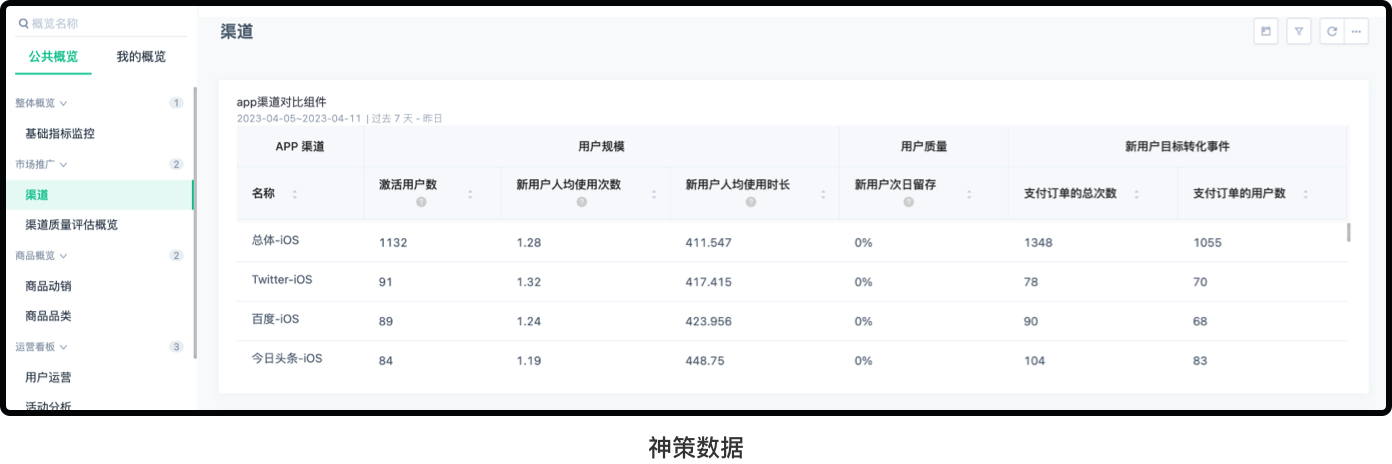 B端逻辑复杂,环环相扣,多种数据嵌套,有时候在表格展示的时候,无法避免的需要使用表头分组,并且这种表格的字数可能都较长,这就很考验设计师们的处理方式了,下面是神策数据的后台界面。