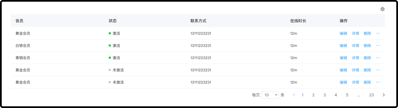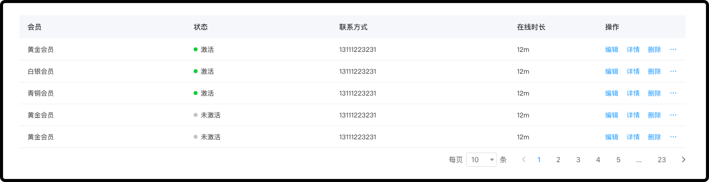 值得注意的是:表格设计中一定不要使用过多的颜色区做状态或操作的区分,过多的颜色细分会使表格变得更加混乱,影响用户体验。对状态的区分,仅用轻量的颜色区分即可,操作栏保持主色按钮色。
