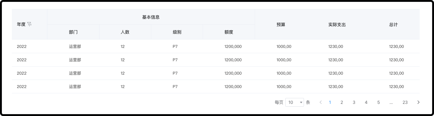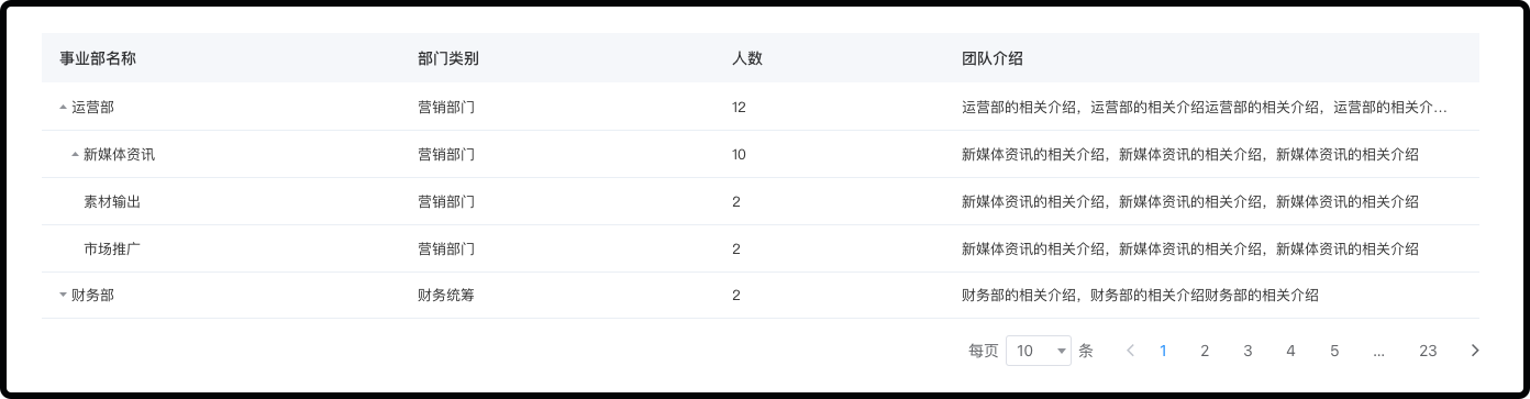 树形表格往往层级分明,上下级关系紧密。当数据信息有清晰的层级关系时,可以使用树表格。