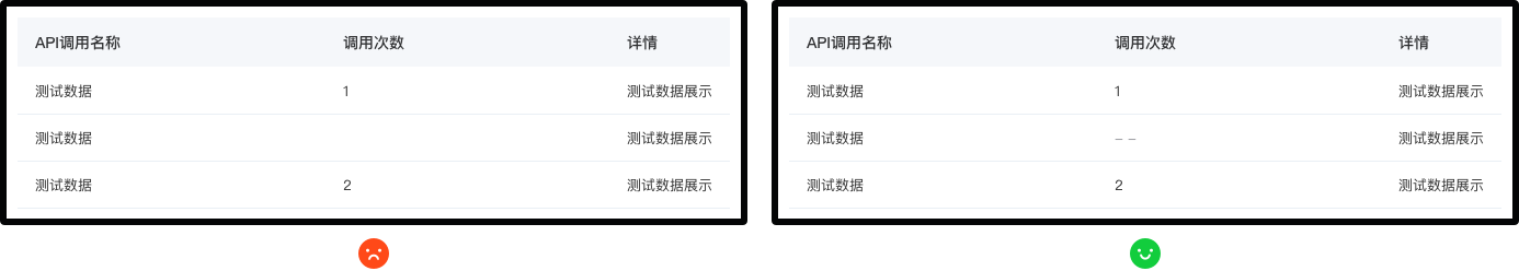 设计表格的时候,要考虑到表格的各种展示情况,非特殊情况不要出现单元格空白。