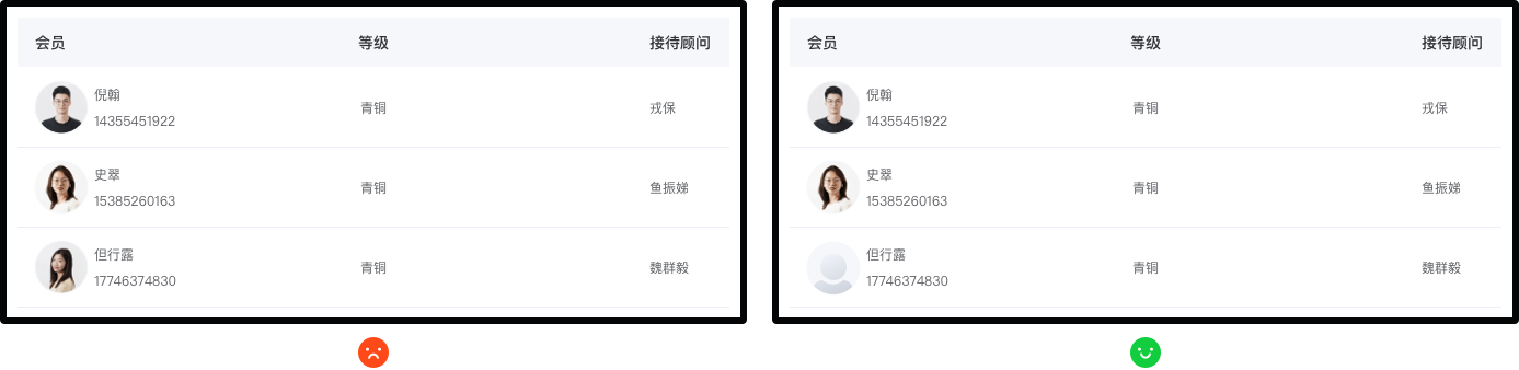 表格中很常见,在真实的展示中,往往还需要加上默认头像展示