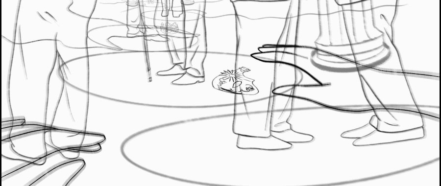 【第一版线稿】在前期沟通中,依照所需的元素:摆动的双手、穿过人群等要素制作了第一版线稿