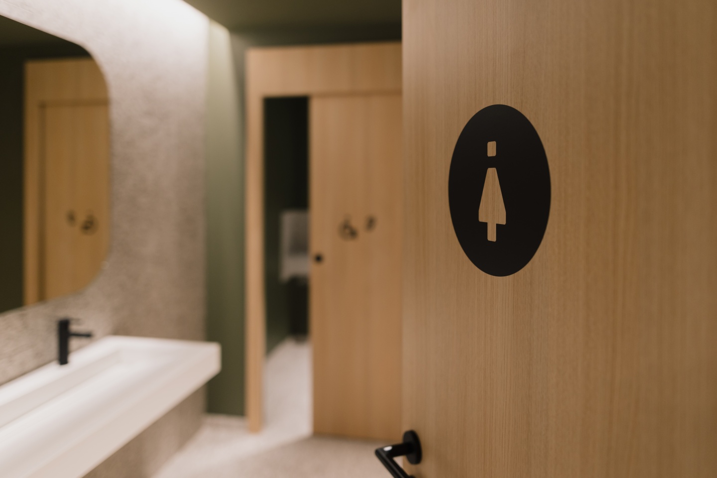 由于该建筑的设计参考了天文学,205工作室将这一特色应用于标牌当中,设计了特定的环境图形,波点元素与内饰相呼应。黑色和白色的配色简约而清爽,每个空间都采用了星星的名字和星座图形编码设计,使其独一无二,整套导视系统具有特殊的定制感。