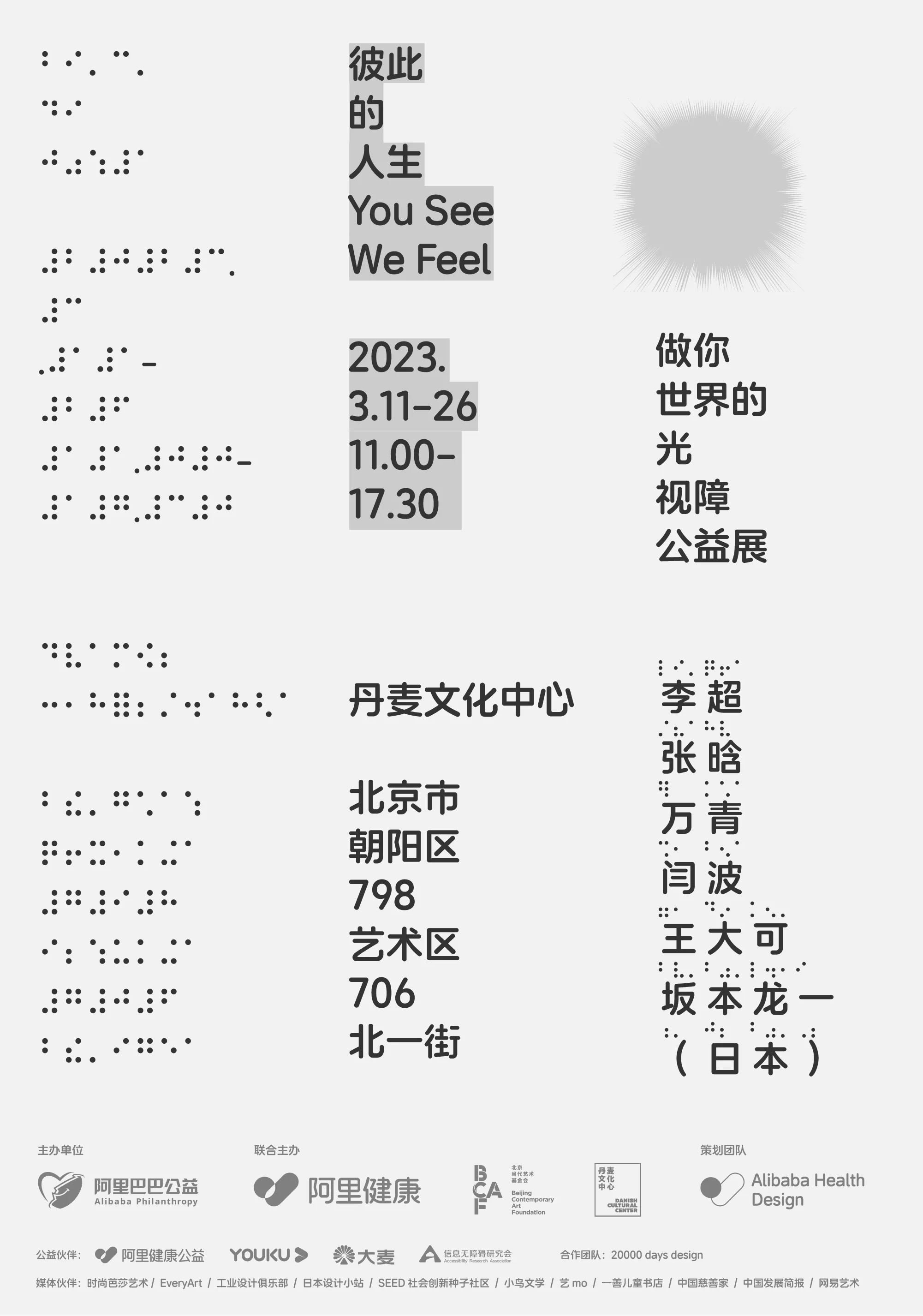 彼此的人生 - 「做你世界的光」视障公益展,是2023年初 20000 days design 参与创作的一个聚焦视障群体的公益展览项目,如期3月在北京798丹麦艺术中心完成展出。