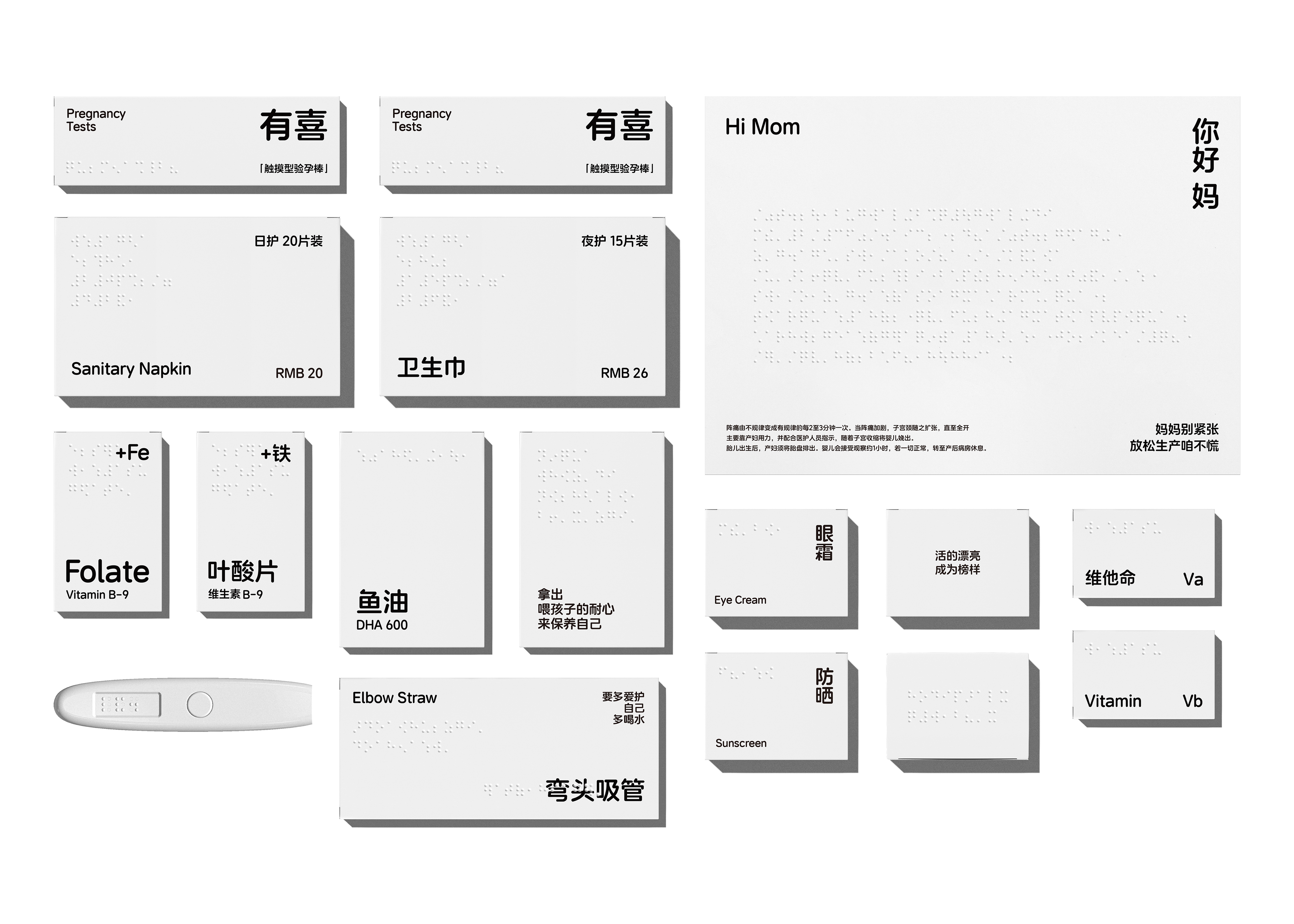 在中国有20万种获批的药品,包装上几乎没有一个带有盲文,对于视障伙伴这是一个很大的安全问题。