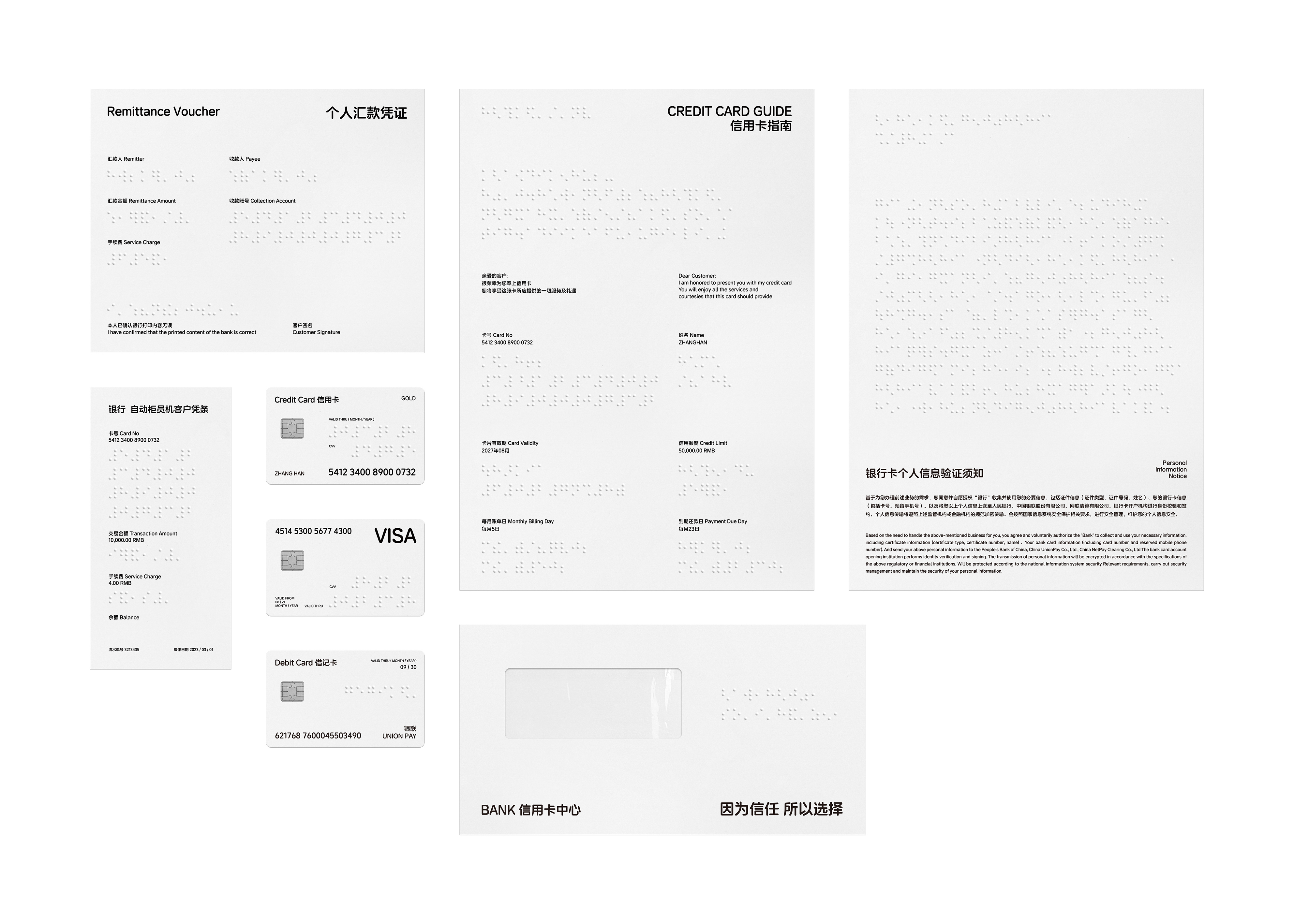 银行是否可以有一套无障碍的业务办理的工具,和相应配套的服务流程,从信息验证须知、信用卡指南、个人汇款凭证、ATM凭条到各类的银行卡,都能实现一份社会的平等和温暖。
