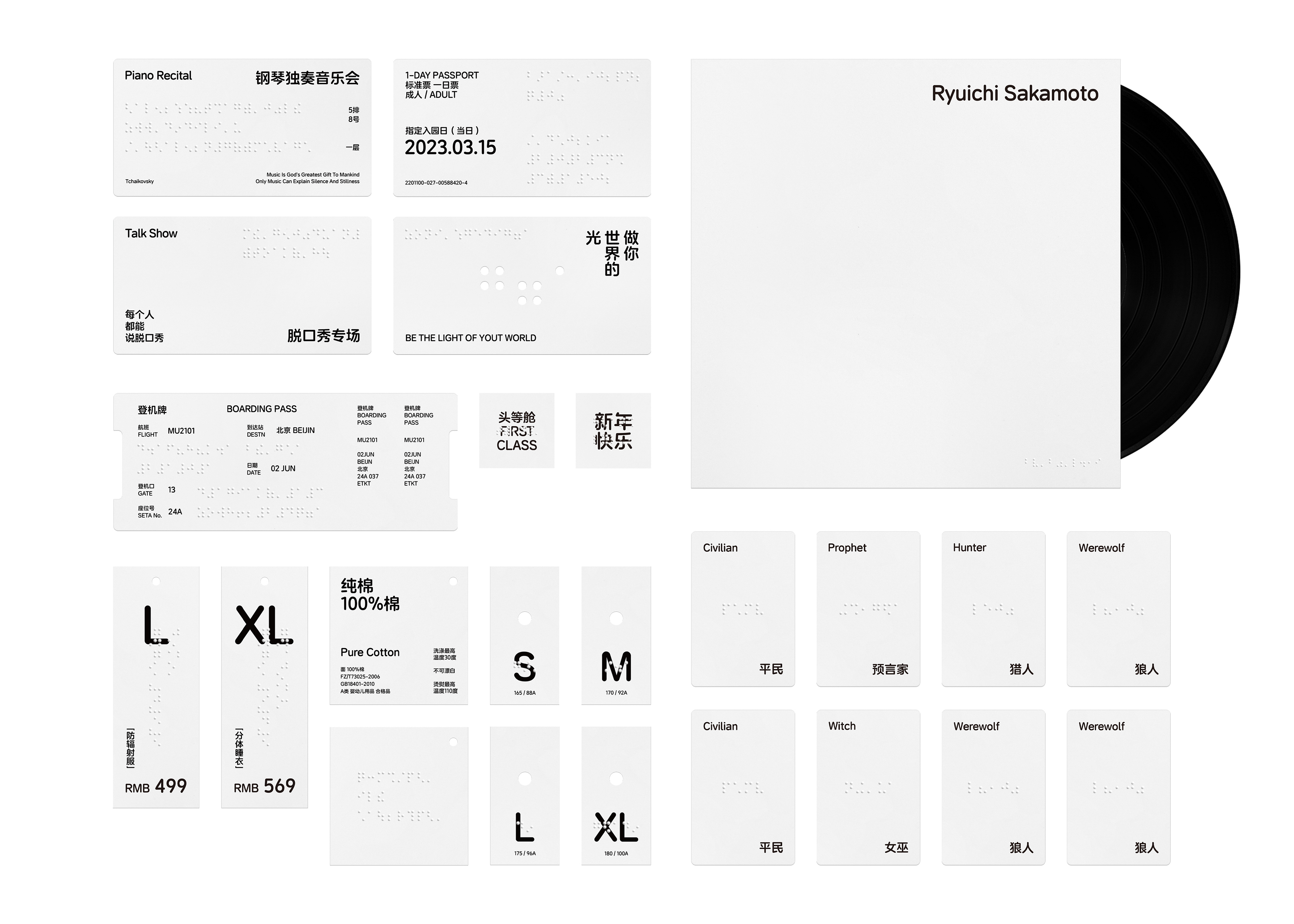 1001件系列作品,一场关于盲文无障碍设计的设想。围绕日常物品构建一个人生轨迹,用艺术呈现视障人士的生活境遇,从而呼吁公众认识到公益和无障碍设计如何促使我们的世界更具有包容性。以善意的方式探索无障碍设计的可能性,展现了一种应该有温度的相处方式。