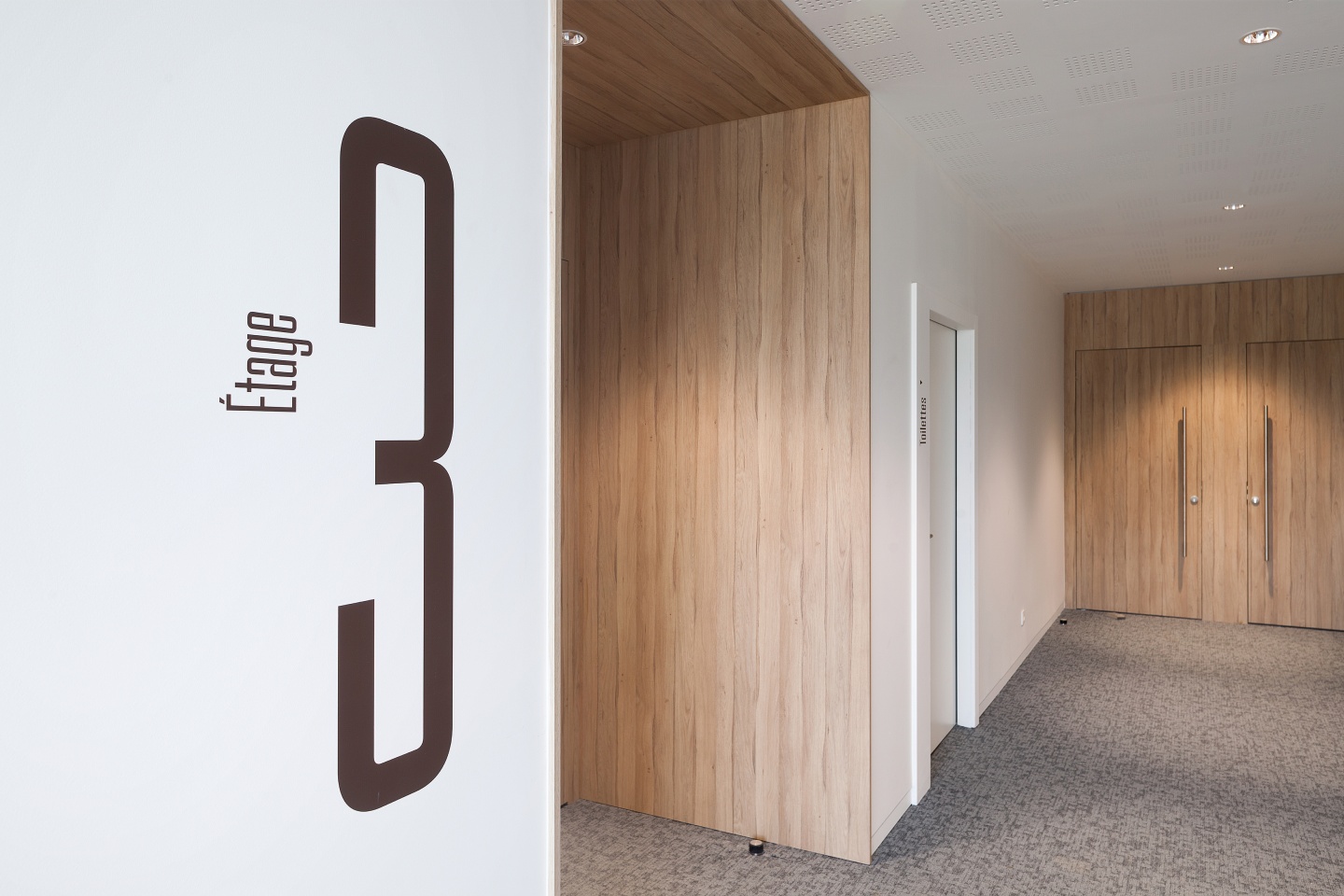 天使圣母学校位于法国里昂第七区,由于一百多年的设施过于破旧,委托AFAA建筑公司建造了两座混合用途的建筑物,设有教室、办公室、住宅和礼堂等设施,205工作室受邀为其进行导视系统设计。