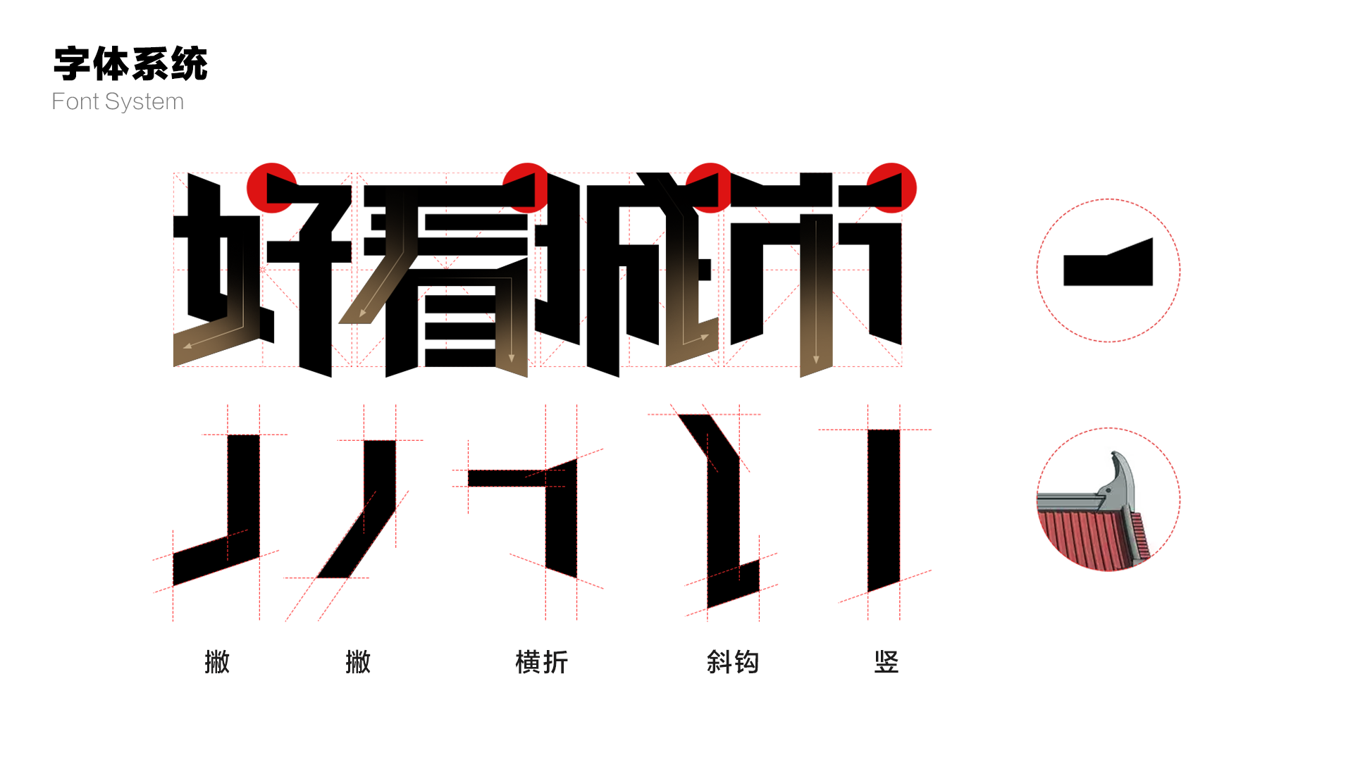 (1)字体设计-“中国字”:在字体设计方面,我们选择主流宋体混搭的字体设计形式,运用现代设计语言,在宋体的基础上改造创新,赋予传统字体新的生命力,传承了中国书法的审美韵味。