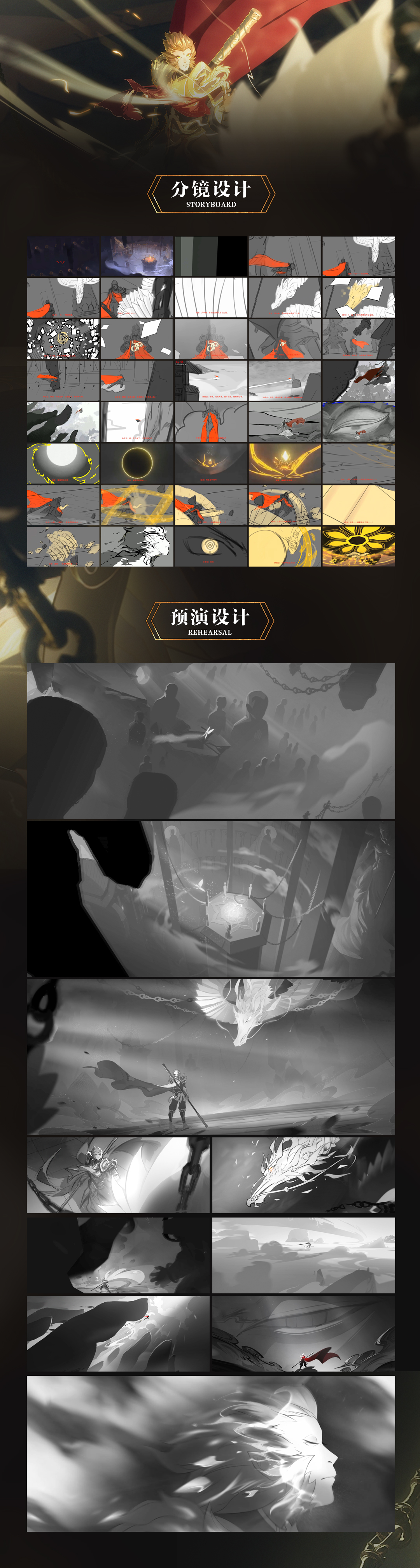 讲中国的神话故事,自然要用中国的传统配色。我们以大片的金色为主调,通过明暗光影的对比,刻画出佛门弘法的大气恢弘;