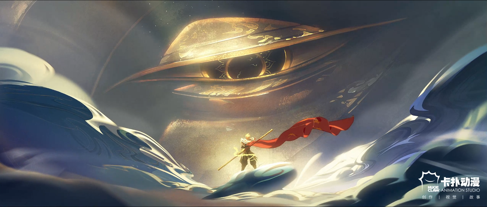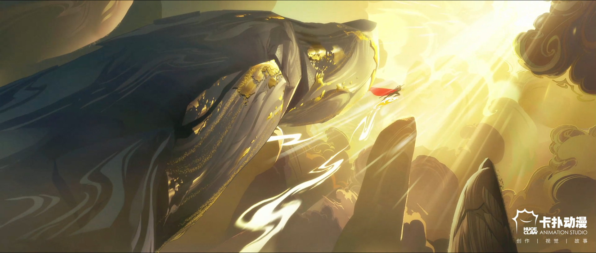为了表现出空间的纵深感及大气磅礴、遮天蔽日的斗法场景,在二维动画的基础上,我们还加入了AE、三维技术以及厚涂技法,增强空间的纵深感和画面的表现力。