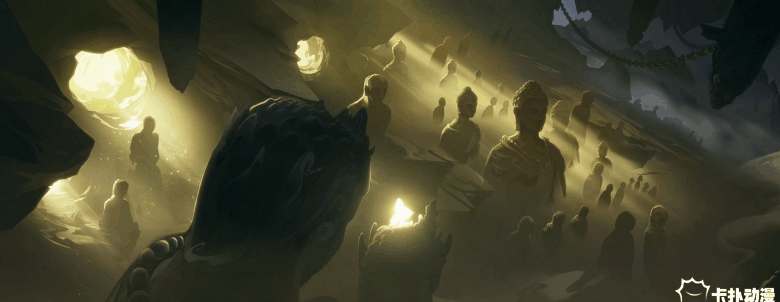 再参考法海寺壁画、克孜尔壁画、莫高窟壁画等,用浓郁的敦煌色调让画面整体更加古朴而庄重——