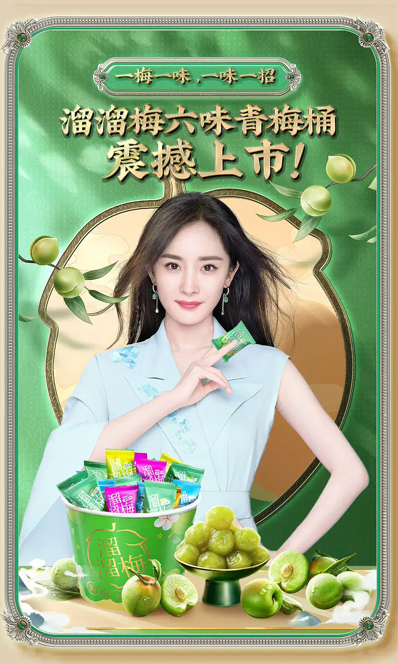常见的IP联名营销模式之一。品牌可以邀请明星担任代言人,通过明星的知名度和影响力,将产品推向市场。比如——“你没事吧?你没事吧?你没事吧?没事就吃溜溜梅!”某知名食品品牌与知名艺人合作推出了一款产品,通过对用户精准洞察,辅以魔性洗脑的广告词,借用明星的粉丝基础和影响力,成功引起广大消费者的关注。
