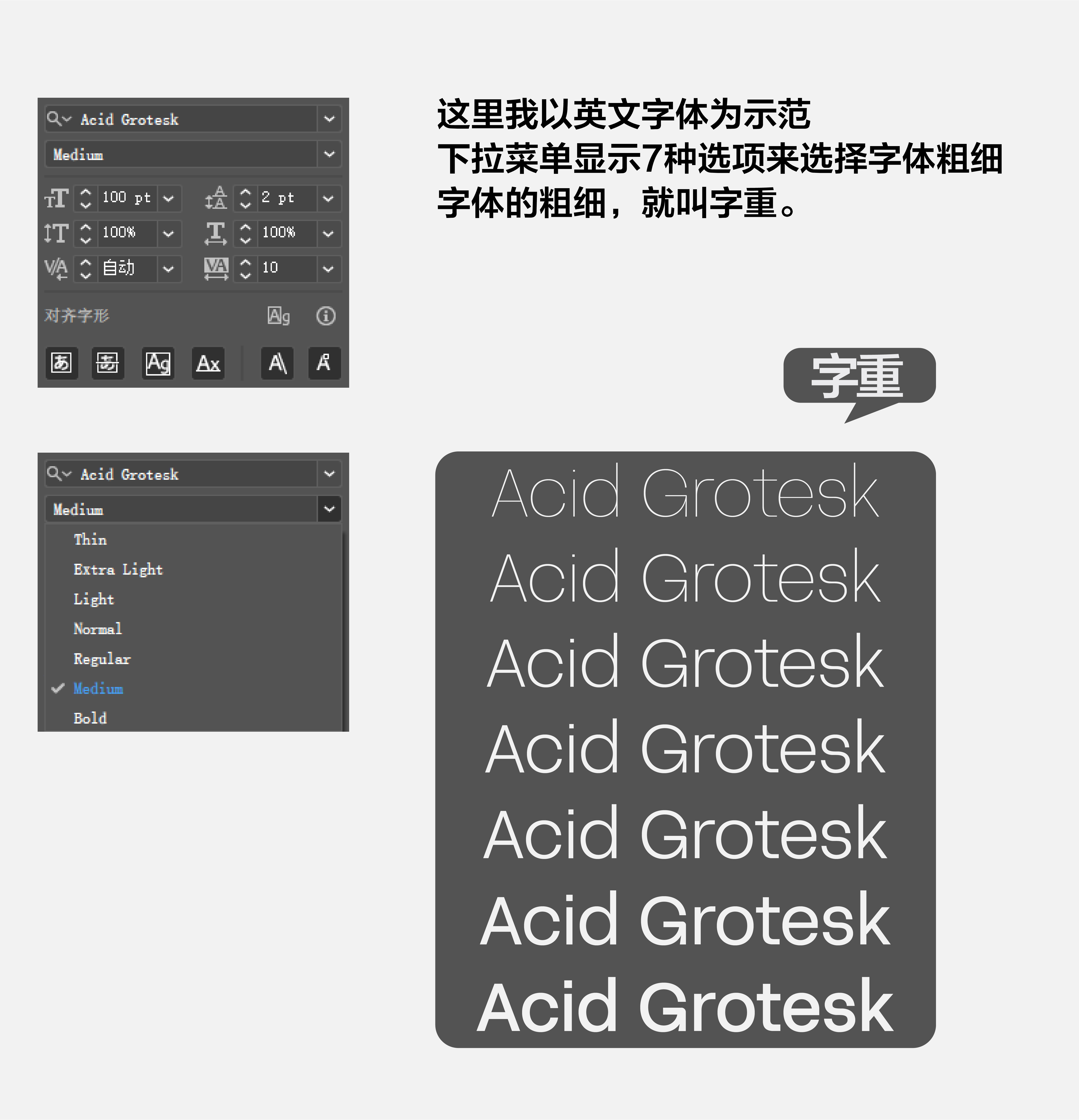 字号对比 字重对比 字体对比