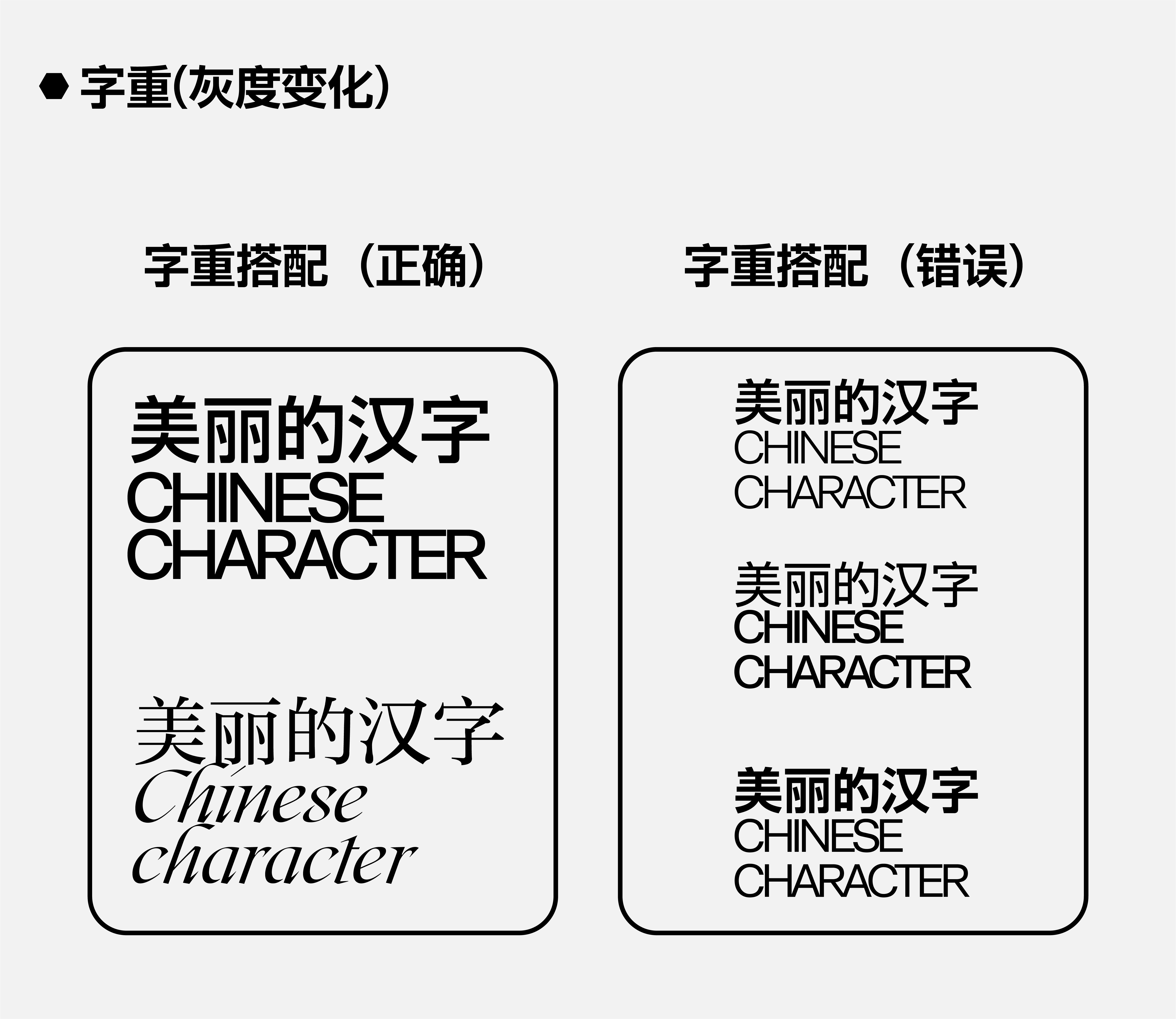 示范了正确与错误的字重适配