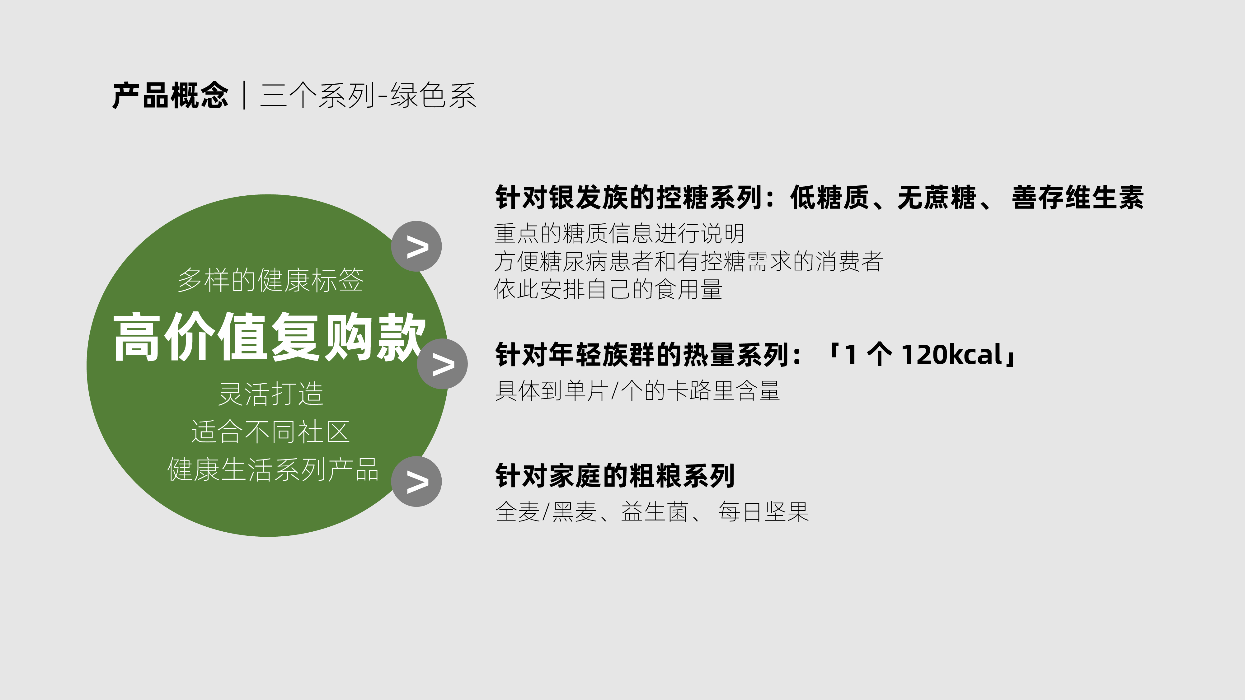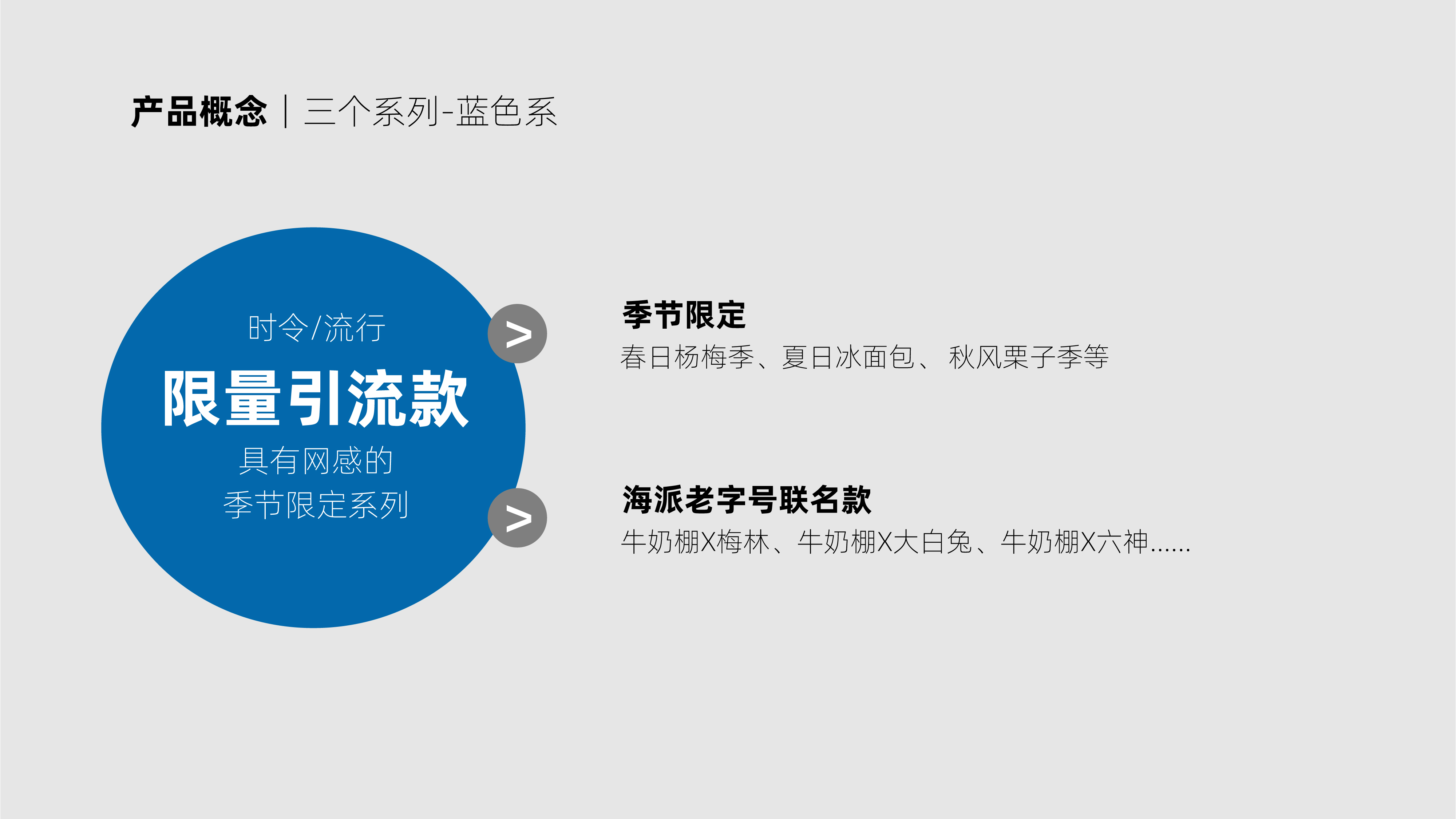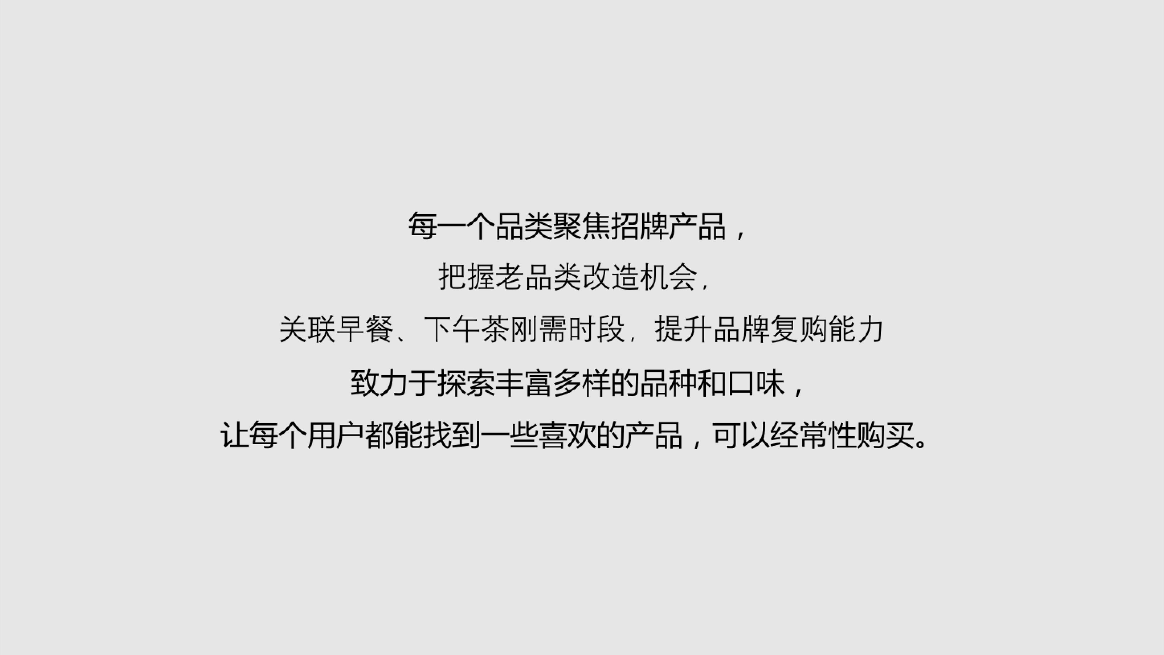 在产品概念上,我们将原先众多SKU划分为三个系列,红色系主打经典记忆传承,微创新老口味,重塑海派经典;绿色系主打健康高价值复购,倡导健康生活;蓝色系主打限量引流,吸引年轻消费客群,和话题讨论。同时我们延续了并升级了品牌原有的乳品+烘焙产品组合,打造“每日能量包”、“早餐包”、“下午茶组合”等省去消费者选择麻烦,顺应现今“一人食”的消费饮食习惯。