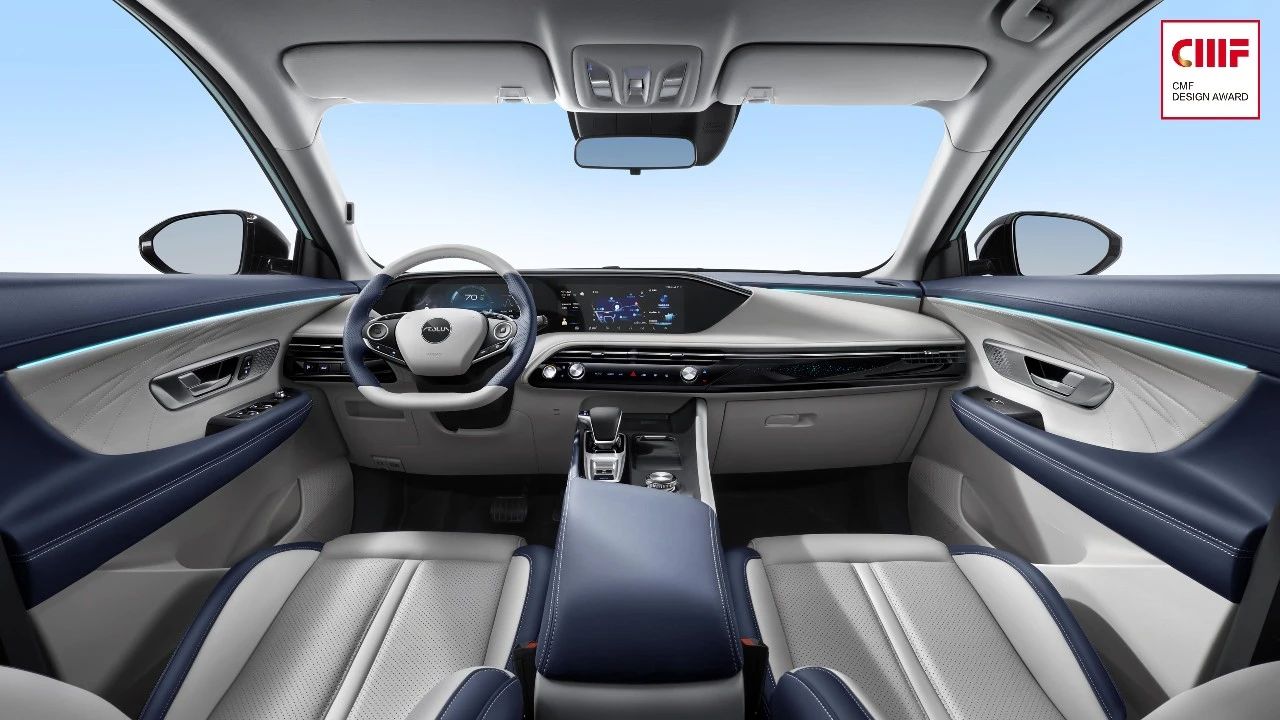 东风风神皓极,同级别车型最大面积软质包覆,环绕型直接接触的细腻Nappa纹皮革,给用户带来最温馨舒适的感受,荣获2022国际CMF设计奖。