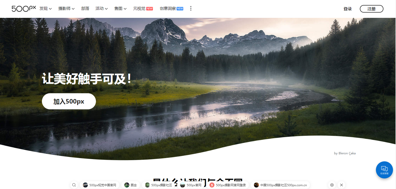 视觉中国旗下的摄影网站,一个致力于摄影分享、发现、售卖的专业平台。网站里的摄影作品质量也是很高的,有助于提高审美。500PX被认为是对国内用户最友好的外网站之一,可以理解为一个致力于视觉摄影分享、发现的平台。名气很大,几乎每个热爱摄影的人都应该知道吧。