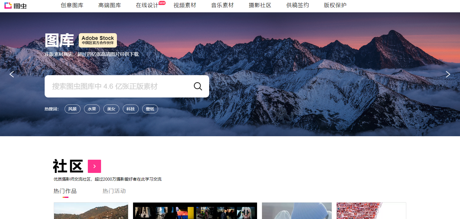 这是一家泛大众化的摄影网站,正版素材很多,毕竟是Adobe Stock中国区官方合作伙伴。用户众多(超过百万摄影爱好者的社区)、年轻人为主。值得注意的是,里面有很多专业的深度摄影频道专题,可以看到很多不同领域的摄影图片。