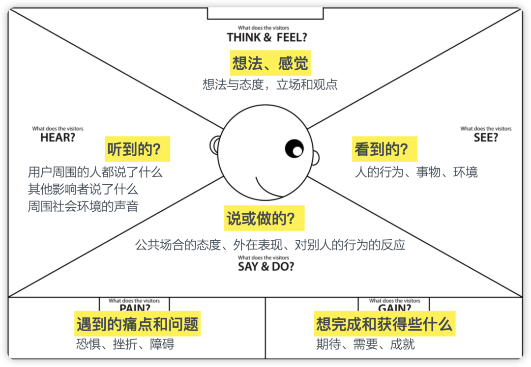 我们进行场景分析的核心能力,就是同理心。 同理心模型,可以实现快速构建思考框架去推演用户行为背后原因的工具。