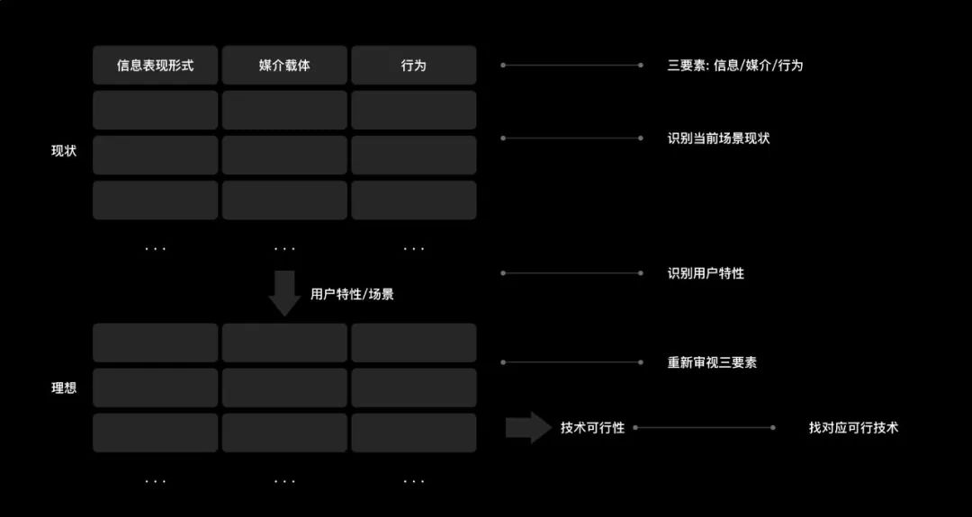 互联网一直在说的体验,其实都是围绕着三个核心要素进行的: 信息、媒介和行为。不管是现在基础体验,还是未来的体验创新变革,都是基于新的技术来改变信息和媒介,从而改变用户在场景中的交互行为。