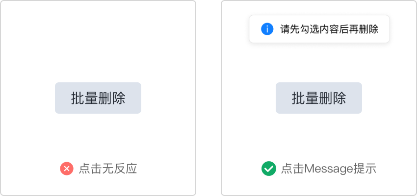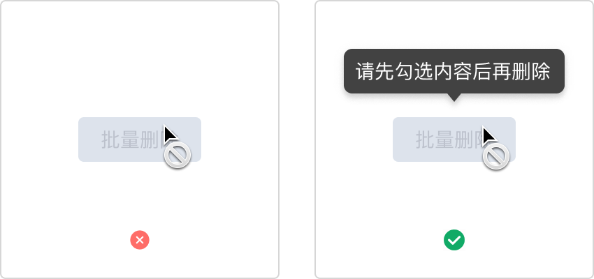 未勾选复选框时,操作按钮时置灰的。建议hover时需要提示,为什么置灰