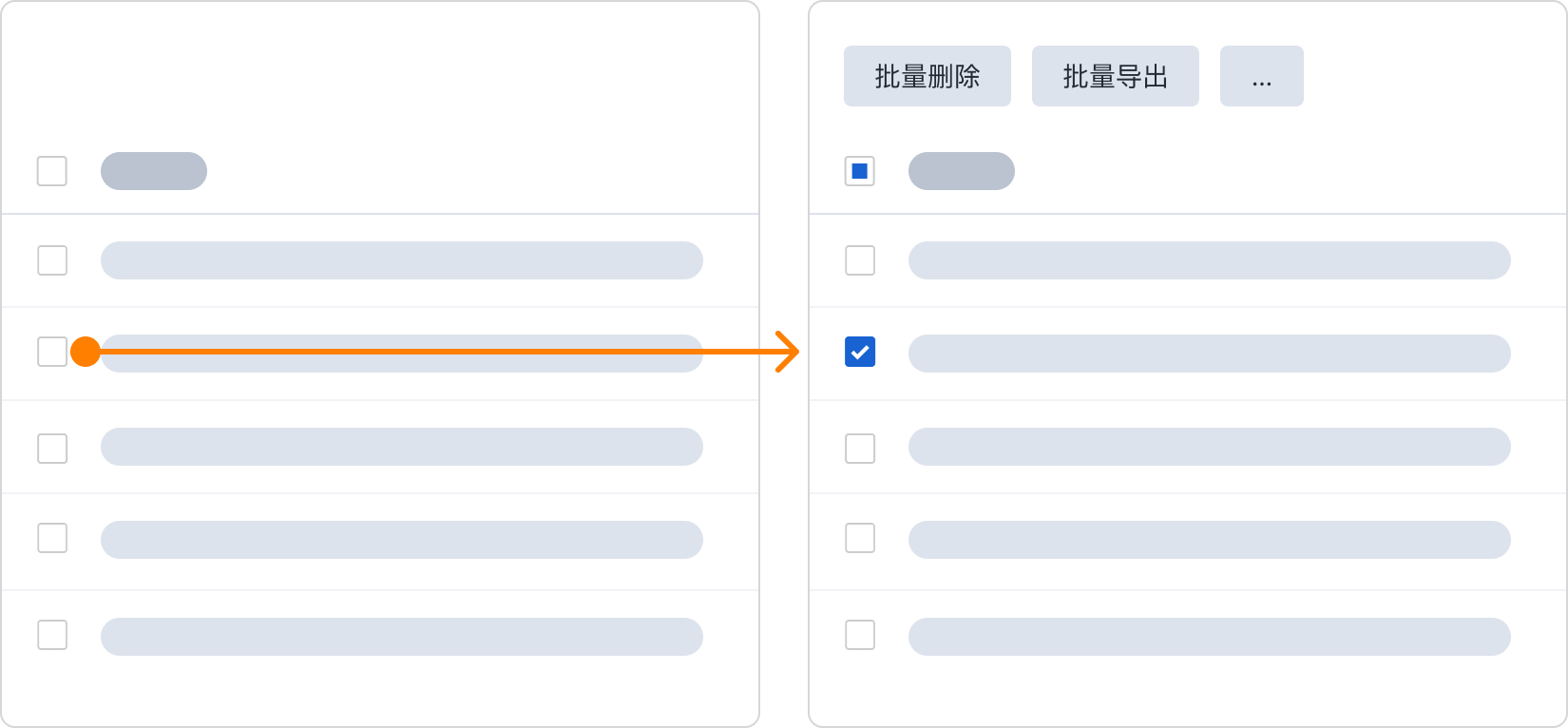 当然这个设计有个缺点是:功能可见性弱。点击复选框之前,用户不知道有哪些批量操作。因为现在这种设计也比较常见, 如果批量操作是删除、导出之类的,就可以放心大胆的用。如果涉及到到一些比较新的功能、想突出的功能,那么可以考虑不适用模式