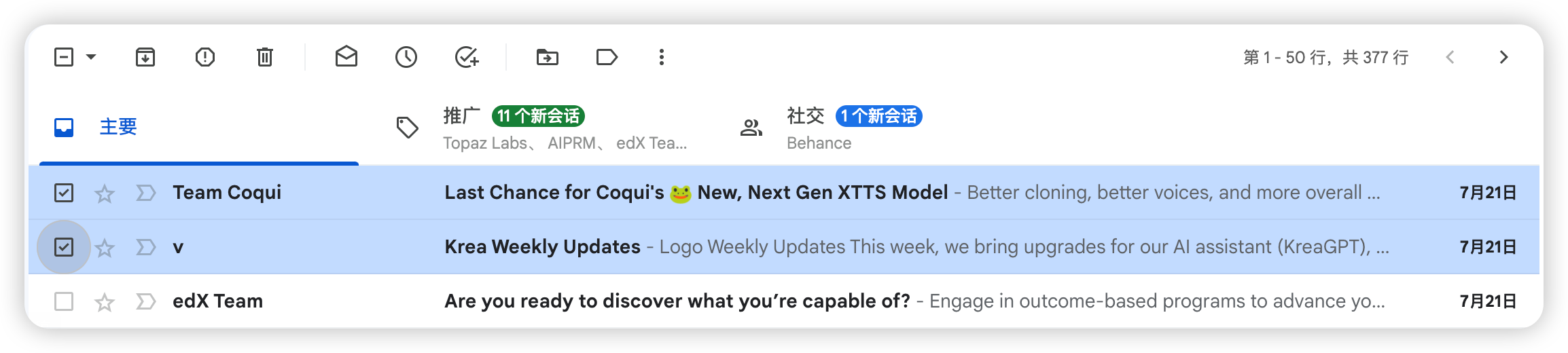 A是谷歌邮箱,经常有垃圾邮件等,会常用到批量操作