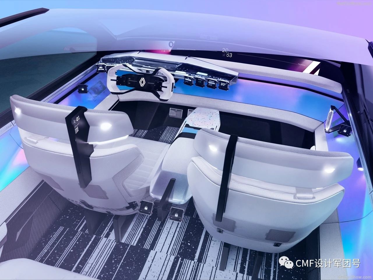 雷诺氢动力概念车Scenic Vision中的地板,一部分采用了回收PET打造。低碳聚酯(PET)取代了皮革材质。