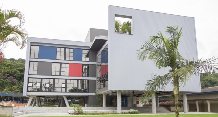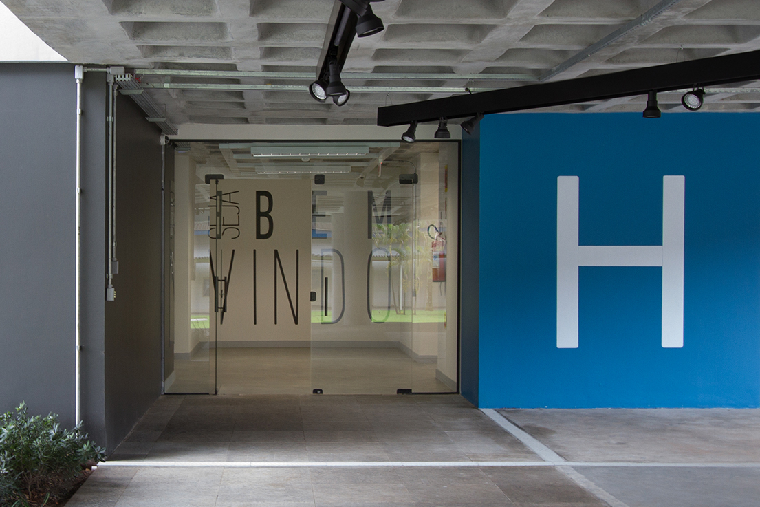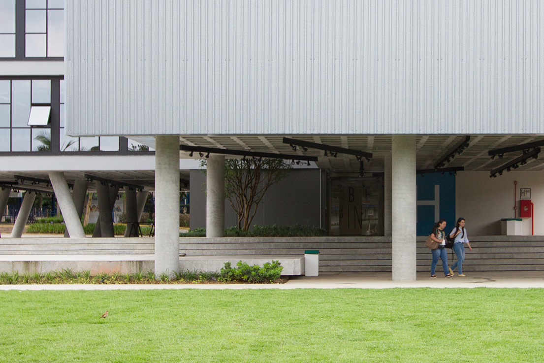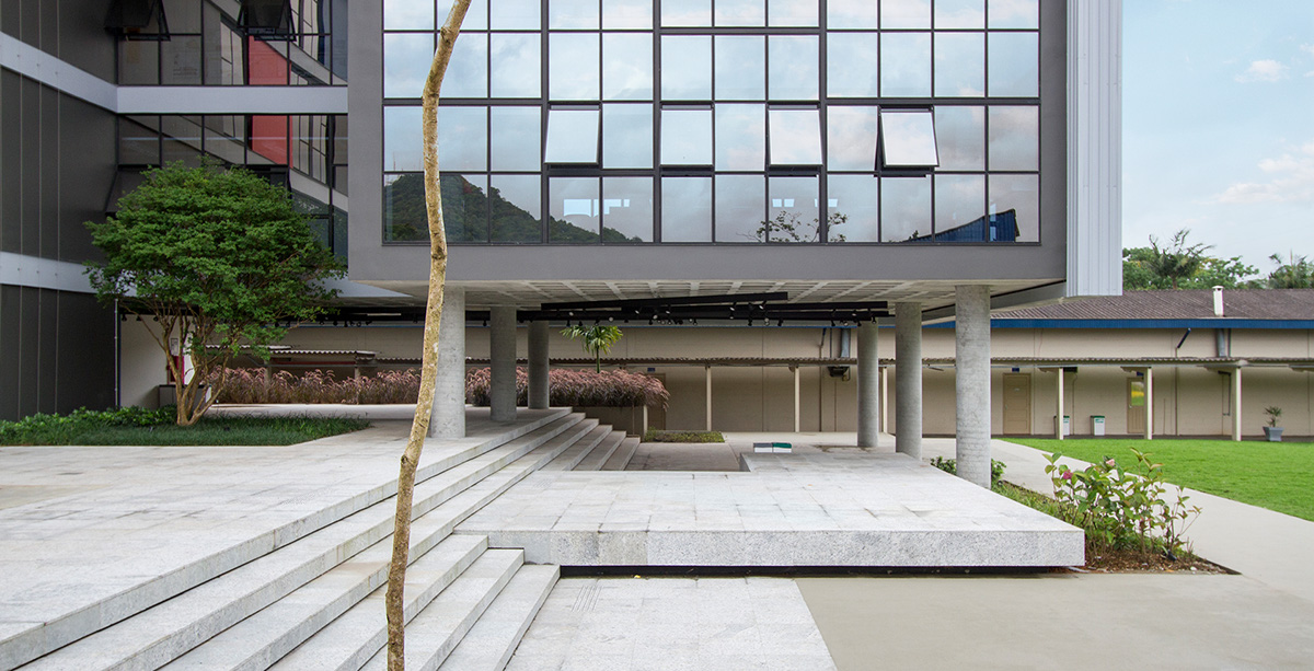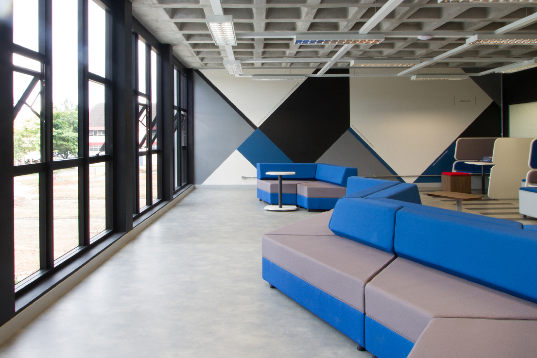 Unisociesc学院位于巴西,为建筑课程开设了新建筑,占地约3000平方米,拥有完善的配套设施,Firmorama工作室受邀为其进行导视系统设计。