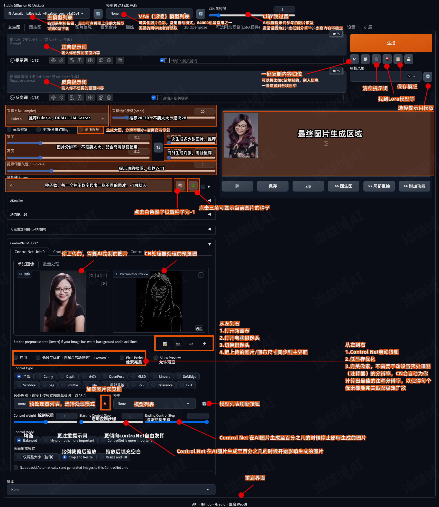 2.对电脑配置要求高,最低Nvidia 6G及以上显存,20G硬盘;推荐8G显存,100-150硬盘,不然生成的图片速度非常慢